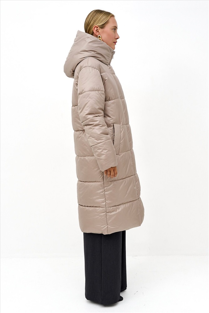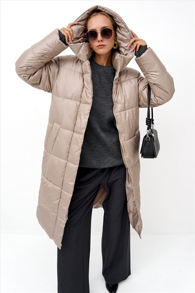 Длина изделия по спинке: 100 см Длина рукава: 65 см Плотность утеплителя: 280 г/м2 Температурный режим: от - 5°C до -20°C Покрой: прямой Тип рукава: втачной Тип карманов: листочки на потайных кнопках. Состав: 100% полиэстер Материал подкладки: 100% полиэстр Ткань: с водоотталкивающей пропиткой. Размеры: 42-52 Детали: капюшон втачной, застежка на молнию и потайные кнопки.