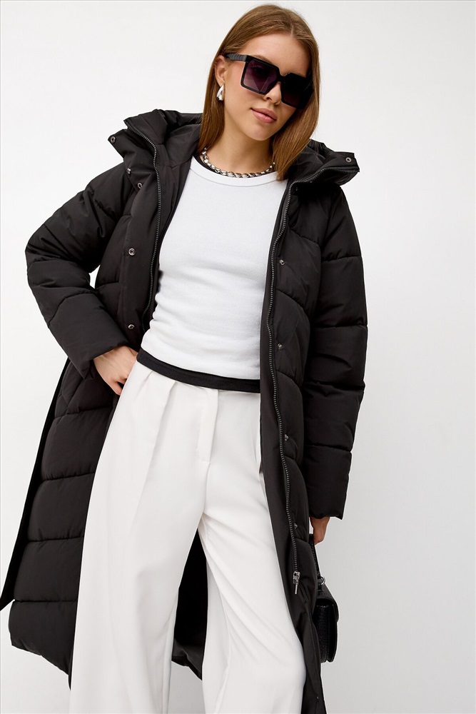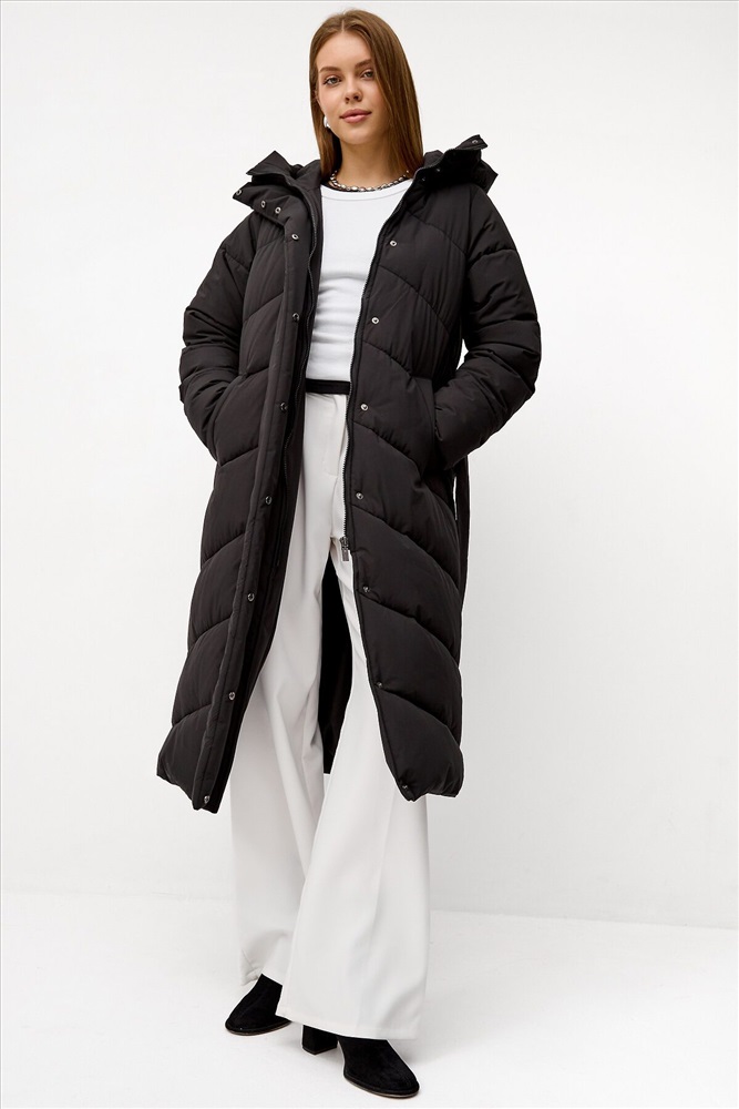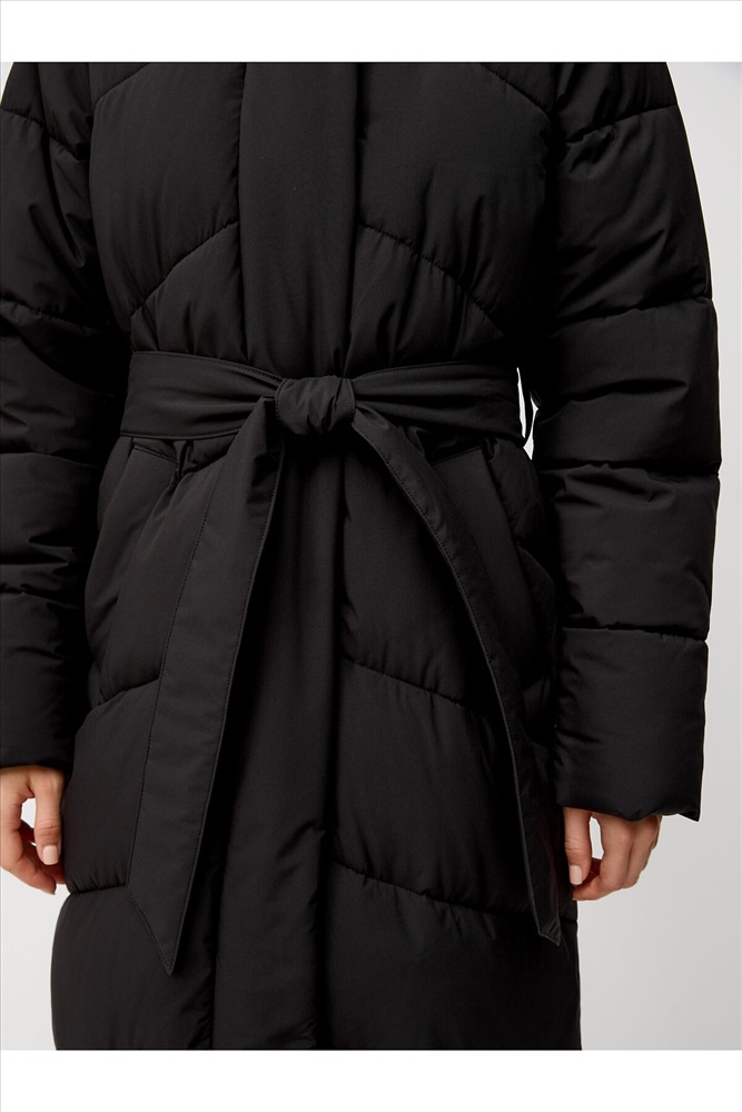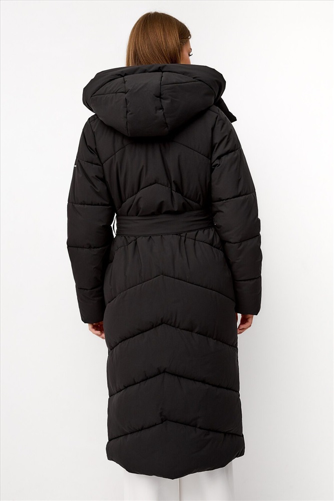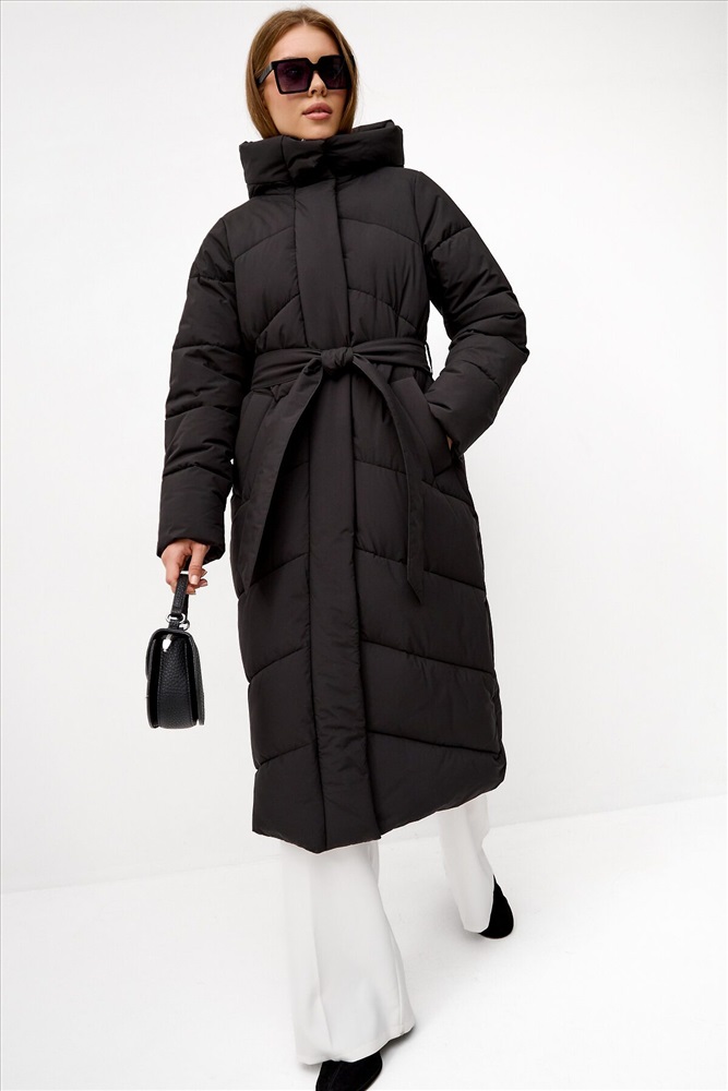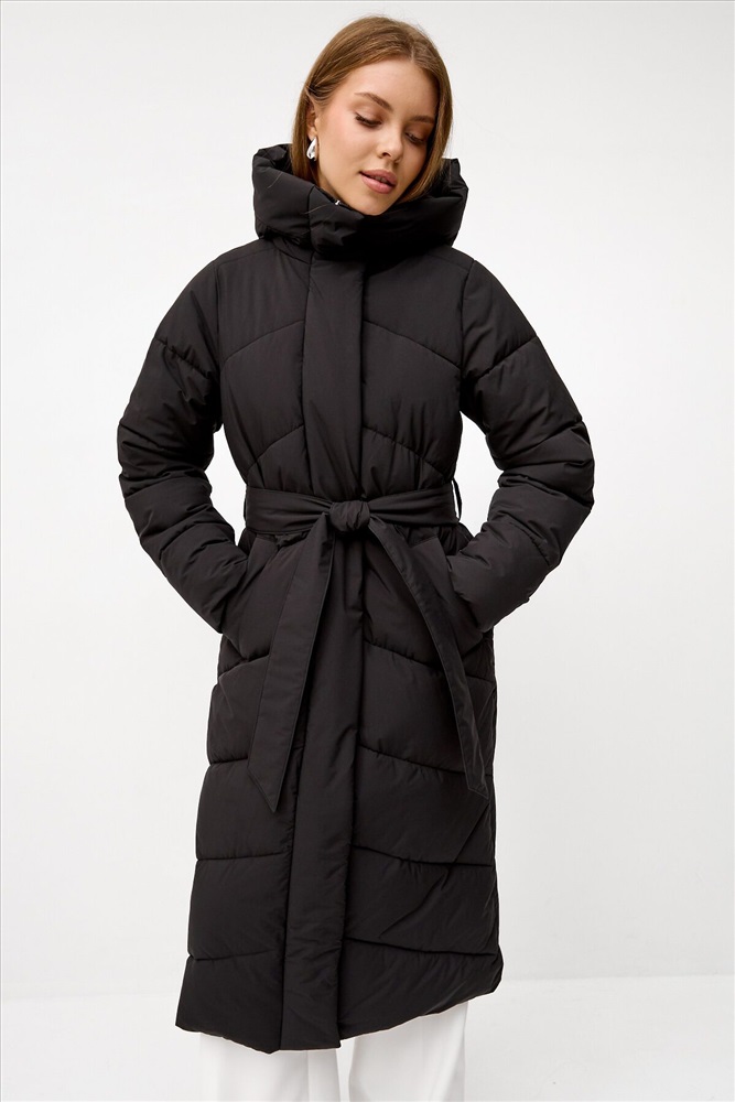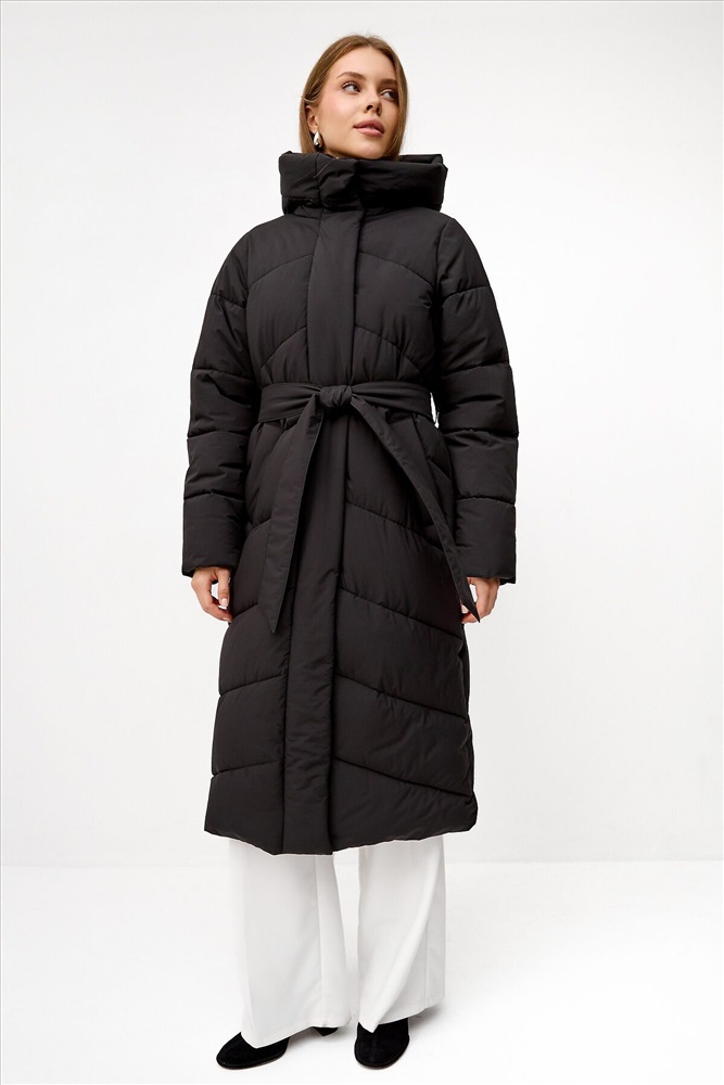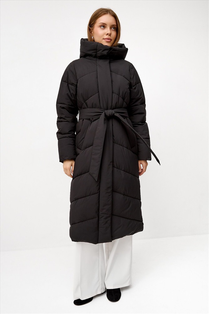 Длина изделия по спинке: 115 см Длина рукава: 66 см Утеплитель: искусственный пух Плотность утеплителя: 280 г/м2 Температурный режим: от -5°С до -20°С Покрой: прямой Тип рукава: втачной Тип карманов: листочки на магнитах Ткань с водоотталкивающей Состав: 100% полиэстер с пропиткой и мембраной Материал подкладки: 100% полиэстер Размеры: 42-56 Детали: застежка на молнию и потайные кнопки, В комплекте пояс из основной ткани Капюшон: неотстежной