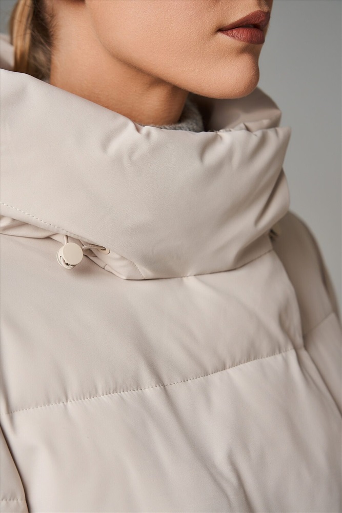 Длина изделия по спинке: 100 см Длина рукава: 65 см Плотность утеплителя: 280 г/м2 Температурный режим: от - 5°C до -20°C Покрой: прямой Тип рукава: втачной Тип карманов: листочки на потайных кнопках. Состав: 100% полиэстер Материал подкладки: 100% полиэстр Ткань: с водоотталкивающей пропиткой. Размеры: 42-52 Детали: капюшон втачной, застежка на молнию и потайные кнопки.