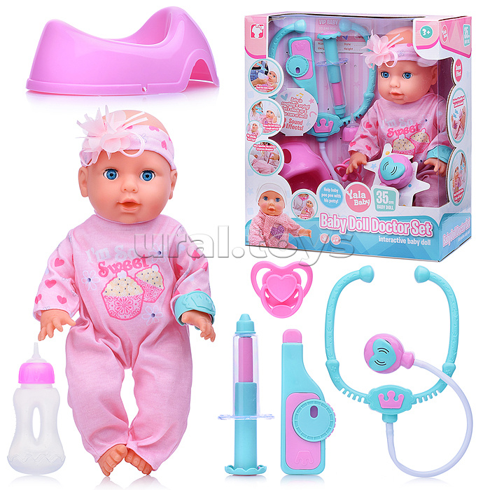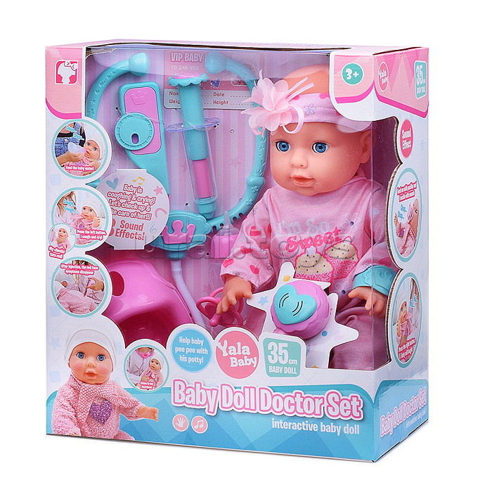 Код: 486427 Штрихкод: 6904111559898 Страна производитель: Китай Размеры упаковки: 30 x 34 x 15 см Количество в коробке: 12 • Высота пупса: 35 см. • Подвижные руки и ноги. • Глаза вставные, закрывающиеся. • Кукла озвучена. • Функции: - пьёт из бутылочки. - ходит на горшок. - издает различные звуки (плачь, кашель, баба/мама.), • Работает от 3-х батареек "АА" ( в комплект не входят). • Материал пупса: полимерные материалы, текстиль. • В комплекте: бутылочка, соска, горшок, градусник, шприц, стетоскоп. • Соответствует требованиям безопасности продукции. • Для детей с 3-х лет. Комментарии к товару