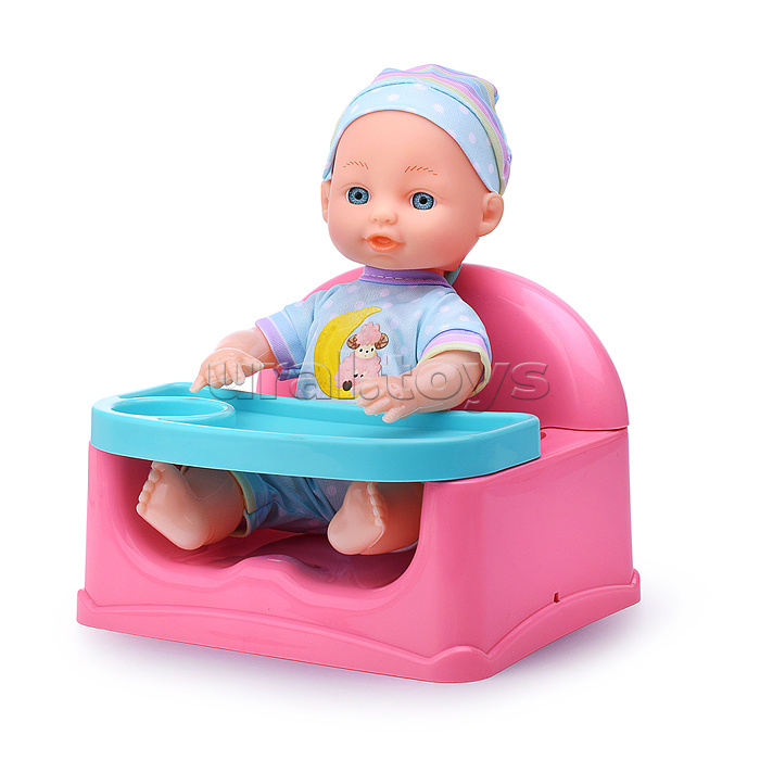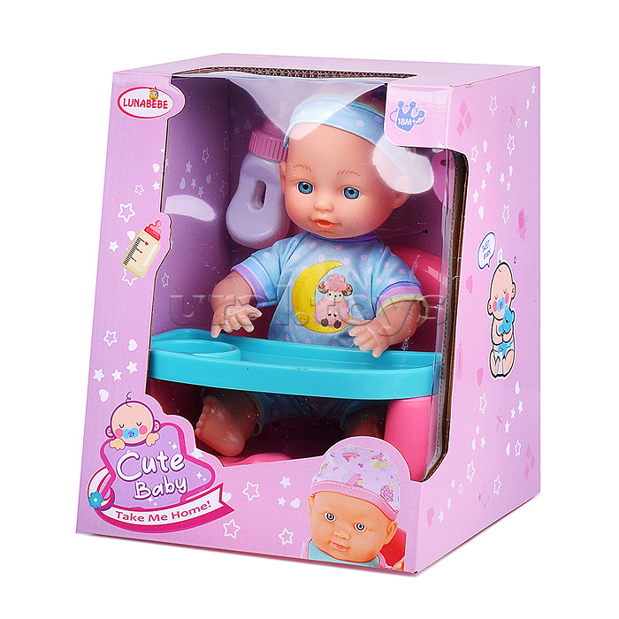 Код: 490103 Штрихкод: 6904111333092 Страна производитель: Китай Размеры упаковки: 20 x 14 x 23 см Количество в коробке: 24 • Высота пупса: 23 см. • Подвижные руки и ноги. • Вставные глаза. • Материал пупса: полимерные материалы, текстиль. • В комплекте: бутылочка, соска, стол для кормления (17х14х15 см.). • Соответствует требованиям безопасности продукции. • Для детей с 18 месяцев. Комментарии к товару