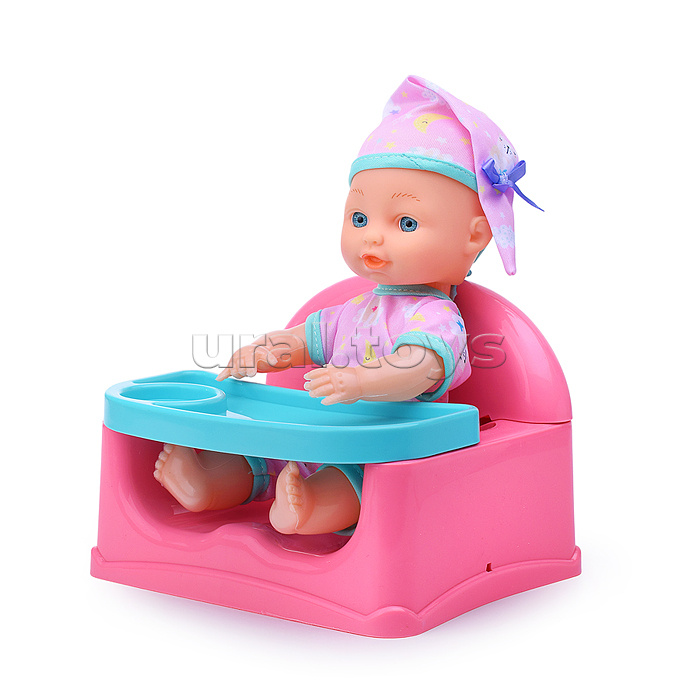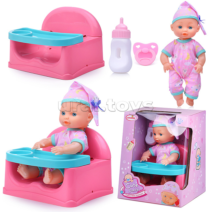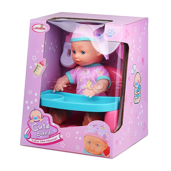 Код: 490106 Штрихкод: 6904111333061 Страна производитель: Китай Размеры упаковки: 20 x 14 x 23 см Количество в коробке: 24 • Высота пупса: 23 см. • Подвижные руки и ноги. • Вставные глаза. • Материал пупса: полимерные материалы, текстиль. • В комплекте: бутылочка, соска, стол для кормления (17х14х15 см.). • Соответствует требованиям безопасности продукции. • Для детей с 18 месяцев. Комментарии к товару