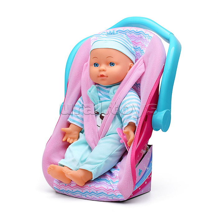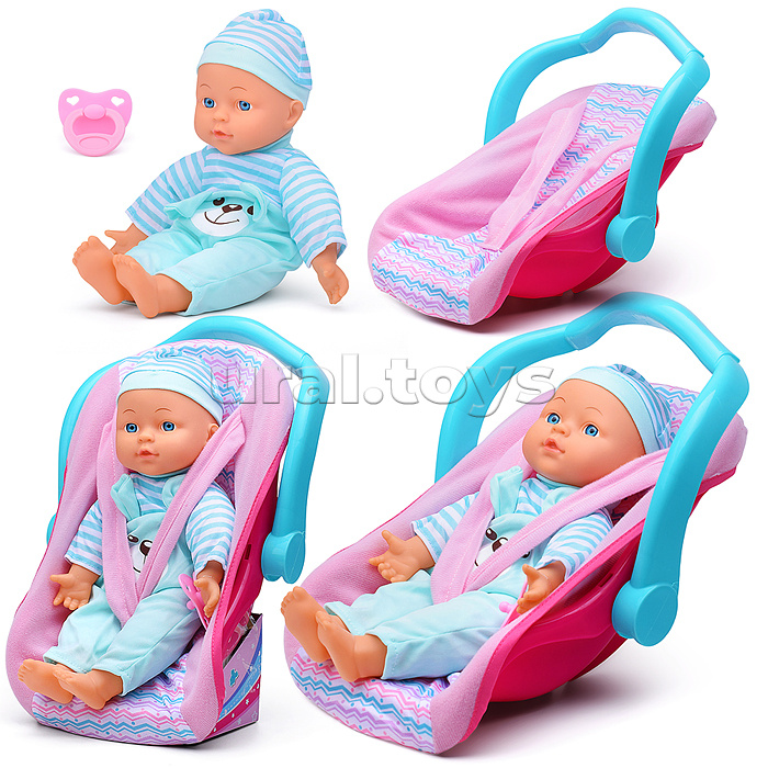 • Высота пупса: 30 см. • Подвижные руки и ноги. • Вставные глаза. • Тело мягконабивное. • Материал пупса: полимерные материалы, текстиль. • В комплекте: соска, люлька (21х3х32 см.). • Соответствует требованиям безопасности продукции. • Для детей с 18 месяцев.
