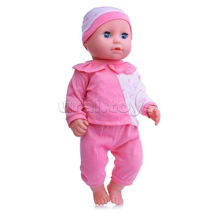 • Рост пупса: 35 см. • Тело из пластика, руки ноги и голова из ПВХ. • Ручки и ножки подвижные, анатомически согнуты в суставах. • Глаза вставные закрывающиеся. • Ходит на горшок (при нажатии кнопки в животе) • В комплекте: стетоскоп (звук биения сердца), бутылочка, градусник, шприц. • При нажатии на звуковой модуль произносит детские фразы. • Для работы звукового модуля используются 3 батарейки типа AG13 (в комплекте демонстрационные). • Для работы стетоскопа используются 2 батарейки типа AG13 (в комплекте демонстрационные). • Материалы: ПВХ, текстиль, элементы из пластика. • Соответствует требованиям безопасности продукции. • Для детей от 2-х лет.