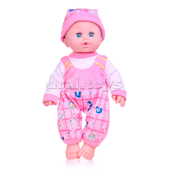• Рост пупса: 33 см. • Тело из пластика, руки ноги и голова из ПВХ. • Ручки и ножки подвижные, анатомически согнуты в суставах. • Глаза вставные закрывающиеся. • Ходит на горшок (при нажатии кнопки в животе) • В комплекте: бутылочка, памперс. • При нажатии на звуковой модуль произносит детские фразы. • Для работы звукового модуля используются 3 батарейки типа AG13 (в комплекте демонстрационные). • Соответствует требованиям безопасности продукции. • Для детей от 3-х лет.