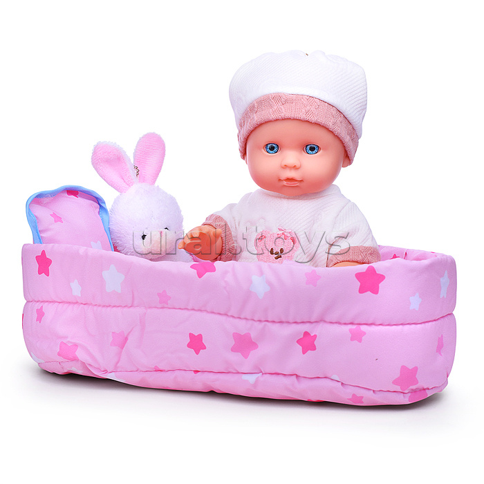 • Высота пупса: 30 см. • Подвижные руки и ноги. • Глаза вставные. • Функции: - пьёт из бутылочки. - ходит на горшок. • Материал пупса: полимерные материалы, текстиль. • В комплекте: бутылочка, соска, игрушка, кокон. • Соответствует требованиям безопасности продукции. • Для детей с 3-х лет.