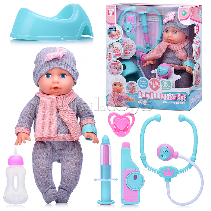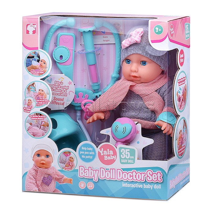 Код: 486424 Штрихкод: 6904111559805 Страна производитель: Китай Размеры упаковки: 30 x 34 x 15 см Количество в коробке: 12 • Высота пупса: 35 см. • Подвижные руки и ноги. • Глаза вставные, закрывающиеся. • Кукла озвучена. • Функции: - пьёт из бутылочки. - ходит на горшок. - издает различные звуки (плачь, кашель, баба/мама.), • Работает от 3-х батареек "АА" ( в комплект не входят). • Материал пупса: полимерные материалы, текстиль. • В комплекте: бутылочка, соска, горшок, градусник, шприц, стетоскоп. • Соответствует требованиям безопасности продукции. • Для детей с 3-х лет. Комментарии к товару