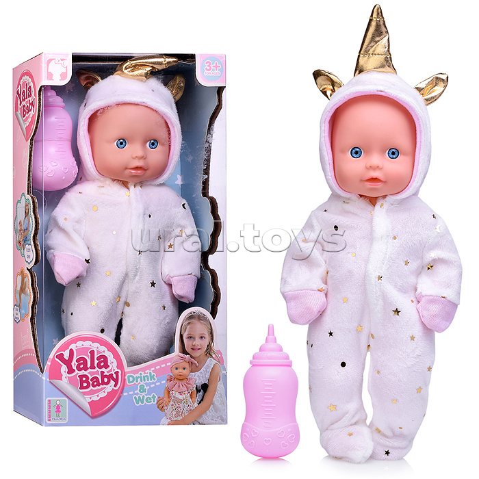 • Высота пупса: 25 см. • Подвижные руки и ноги. • Глаза вставные. • Функции: - пьёт из бутылочки. - ходит на горшок. • Материал пупса: полимерные материалы, текстиль. • В комплекте: бутылочка. • Соответствует требованиям безопасности продукции. • Для детей с 3-х лет.