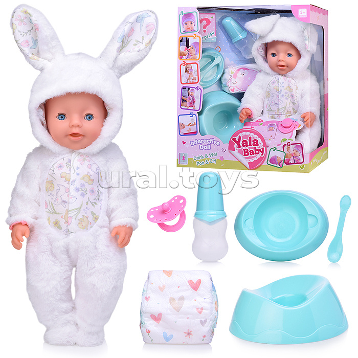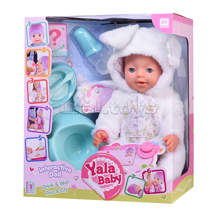 Код: 486370 Штрихкод: 6904110351585 Страна производитель: Китай Размеры упаковки: 38 x 33 x 18 см Количество в коробке: 6 • Высота пупса: 45 см. • Подвижные руки и ноги. • Глаза вставные, закрывающие. • Функции: - пьёт из бутылочки. - ходит на горшок. - катятся слезы. • Материал пупса: полимерные материалы, текстиль. • В комплекте: бутылочка, горшок, соска, памперс, тарелочка с ложечкой. • Соответствует требованиям безопасности продукции. • Для детей с 3-х лет. Комментарии к товару