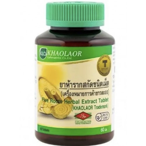 Пять корней, таблетки от жара и лихорадки Khaolaor Five Root Extract 60 tab Натуральный растительные таблетки на основе пяти корней лекарственных растений Five Root Extract против жара и лихорадки от тайского производителя качественных фитопрепаратов бренда Khaolaor. Натуральный растительные таблетки Пять корней принимают в качестве жаропонижающего средства при высокой, либо повышенной температуре, для лечения жара и лихорадки, при первых симптомах ОРВИ и гриппа. Способ применения: