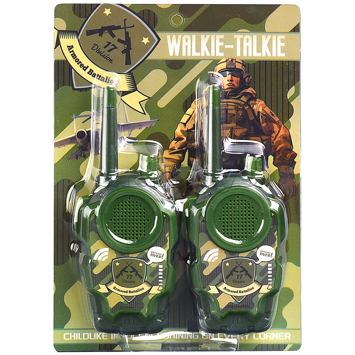 Код: 487444 Штрихкод: 6904111628938 Страна производитель: Китай Размеры упаковки: 17 x 25 x 4 см Количество в коробке: 60 • В наборе 2 рации. (размеры: 7х3х17 см.) • Требуется 3 батареи типа «АА» на каждое устройство (не входят в комплект) • Радиус действия: до 50 м. • Материал: пластик. • Соответствует требованиям безопасности продукции. • Для детей от 3-х лет. Комментарии к товару