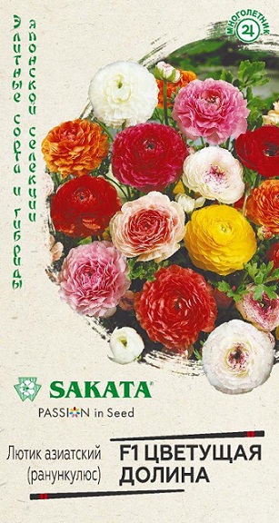 Фееричная карликовая смесь высотой всего 20-25 см идеально подойдет для выращивания в горшечной культуре или создания ярких цветущих клумб и бордюров. Очаровательные махровые цветки, диаметром 8 см, похожи при раскрытии бутонов на розочки, а в полном роспуске - на миниатюрные махровые маки. Стебель простой с небольшими глубоко рассечёнными листьями. Цветет в конце июня - июле. В феврале-марте семена поверхностно высевают в ящик, заполненный чуть влажной, рыхлой землей и слегка присыпают. Затем емкость с землей переносят в темное прохладное помещение и содержат при температуре +2-(+7)°С (стратификация). Через 45-50 дней посевы помещают в освещенное место, аккуратно увлажняют из пульверизатора и накрывают стеклом. На 10-12 день начинают появляться первые ростки. В мае, когда высота сеянцев достигает 10 см, их высаживают в садовый парничок на расстоянии 10-15 см друг от друга или в отдельный горшок (для выращивания на балконе). После окончания заморозков растения переносят в открытый грунт. Молодые сеянцы ранункулюса образуют за сезон полноценные клубеньки и зацветают. Осенью клубеньки выкапывают и просушивают, хранят при температуре 4-6 0С. Весной, перед посадкой, их на сутки замачивают в воде и высаживают через 15-30 см.