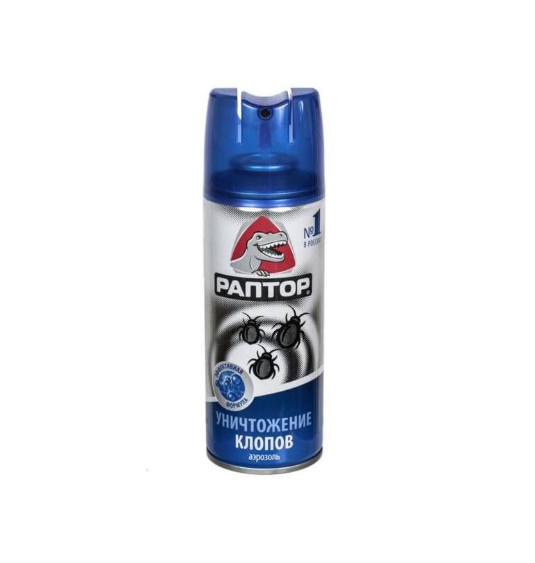 После распыления аэрозоля РАПТОР против клопов образуют капли, которые, попадая на насекомых, приводят к быстрому проникновению инсектицида в тело через хитиновый покров, убивая клопов за очень короткое время. Часть капель остается на обработанных аэрозолем РАПТОР поверхностях, по которым перемещаются клопы. Тем самым обеспечивается длительная защита помещения, поскольку насекомые контактируя с обработанной аэрозолем поверхностью становится носителями отравляющего вещества и через некоторое время погибают. Комментарии к товару