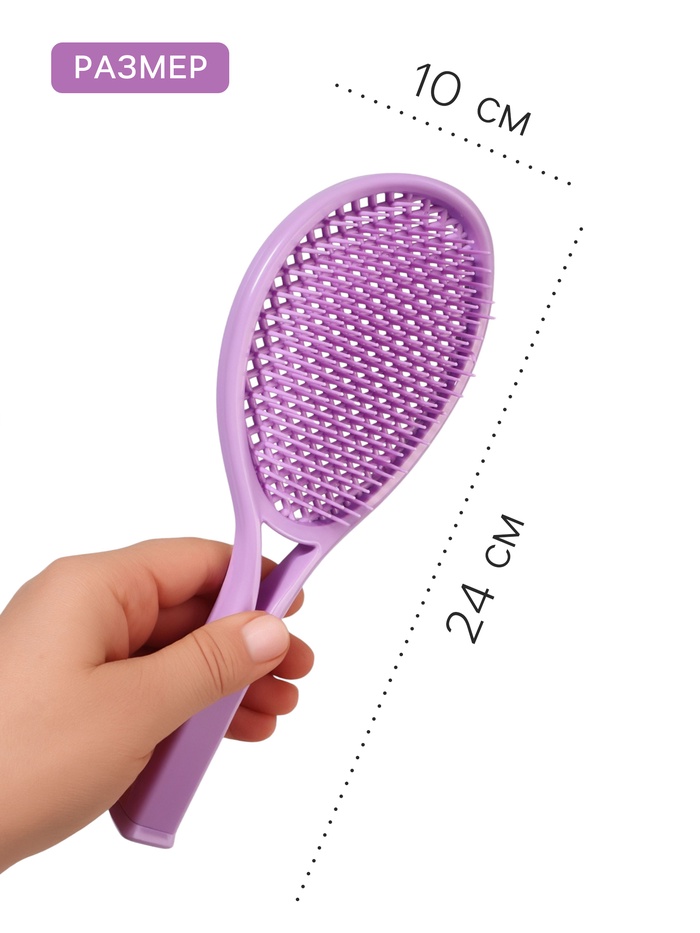 Расчёска обладает вентилируемой конструкцией, которая позволяет воздуху свободно циркулировать между зубьями. Это способствует более быстрой и равномерной сушке волос, минимизируя их повреждение от тепла. Овальная форма и удобная ручка обеспечивают комфортный хват даже при длительном использовании.