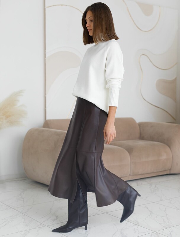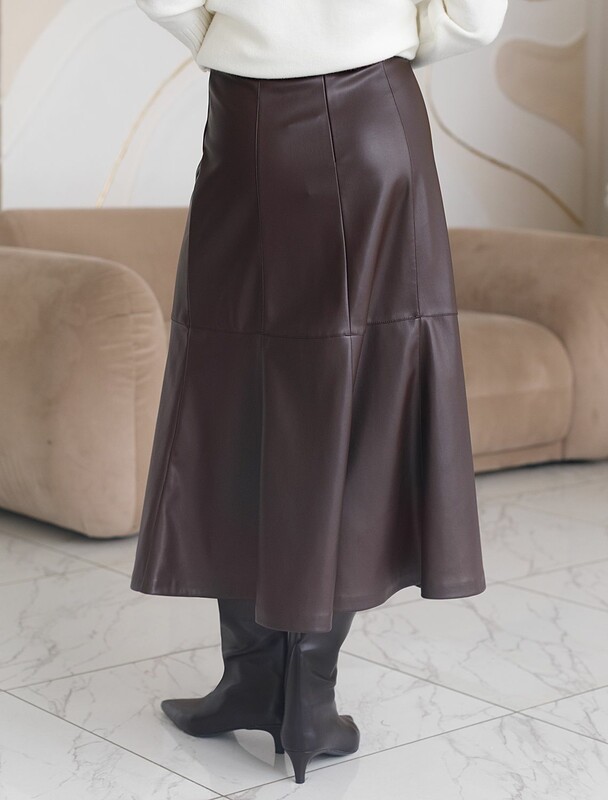 Стильное решение для смелых и уверенных образов. Юбка черного цвета, свободного кроя с плавные волнами на ткани, создает эффектный силуэт, подчеркивая женственность и динамику движения. Пояс стандартной ширины с обтачкой из мягкой изнанки обеспечивает комфорт при носке, не сковывая движений. Небольшой разрез до колена добавляет лёгкую дерзость и удобство при ходьбе. Качественная искусственная кожа придает юбке благородный блеск и износостойкость, сохраняя при этом легкость и эластичность.