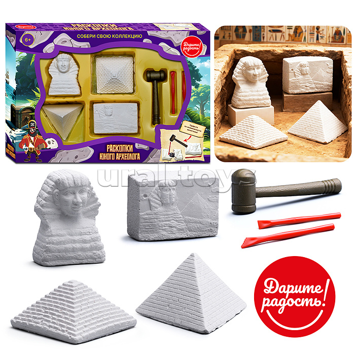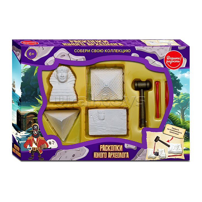 В наборе: - окаменелый грунт 4 шт. - молоток 1 шт. - палочки 2 шт. Соответствует требованиям безопасности продукции. Для детей от 6 лет.