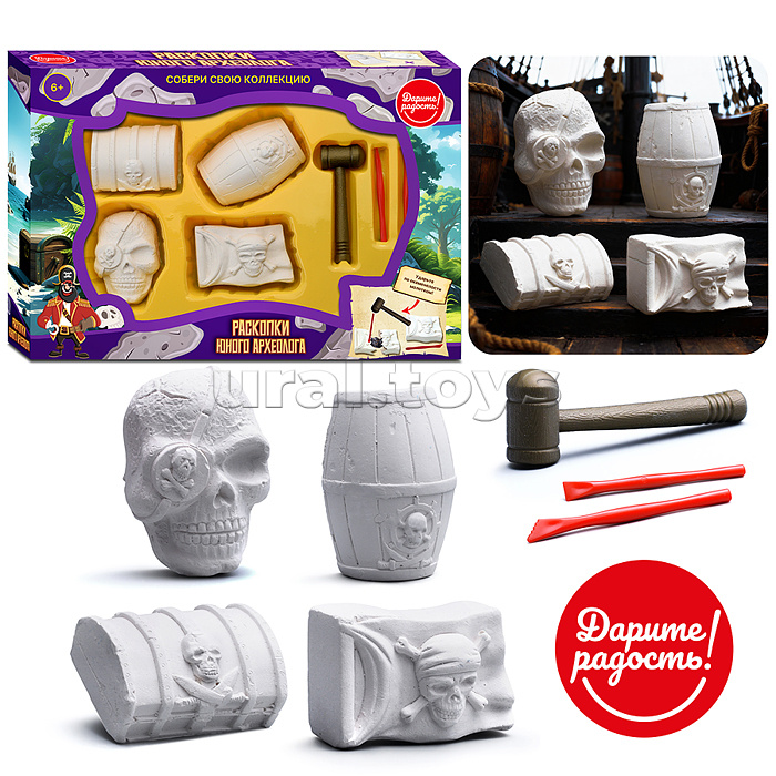 В наборе: - окаменелый грунт 4 шт. - молоток 1 шт. - палочки 2 шт. Соответствует требованиям безопасности продукции. Для детей от 6 лет.