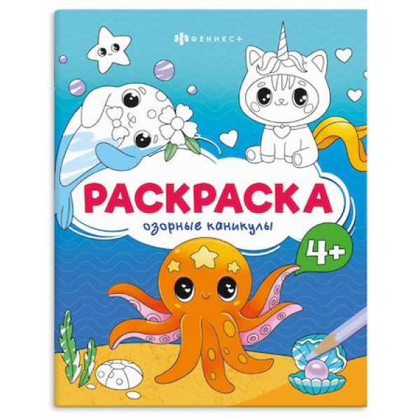 Книжка-раскраска для детей. Серия «Весёлые рисунки» арт. 73394 ОЗОРНЫЕ КАНИКУЛЫ /165?205 мм, 8 л., блок - офсет 100 г/м?, печать в две краски, обл - мелованный картон 200 г/м?, мягкий переплёт (2 скобы),