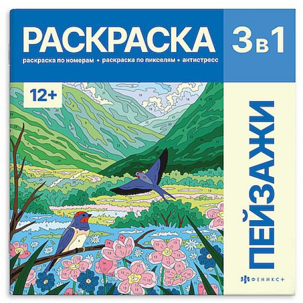 Раскраска. Серия "Картины по номерам 3-в-1" арт. 72307 ПЕЙЗАЖИ /215x215 мм, 16 л., блок - офсет 120 г/м2, полноцветная печать/печать в одну краску, обл - мелованный картон 200 г/м2, мягкий переплёт (2 скобы)