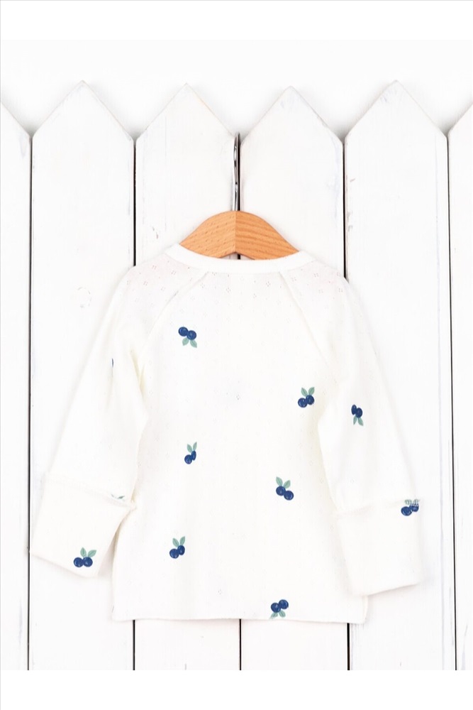 Распашонка с центральной застежкой на кнопках, рукавами реглан с высокими антицарапками. Выполнена швами наружу из ажурной рибаны (100% хлопок).