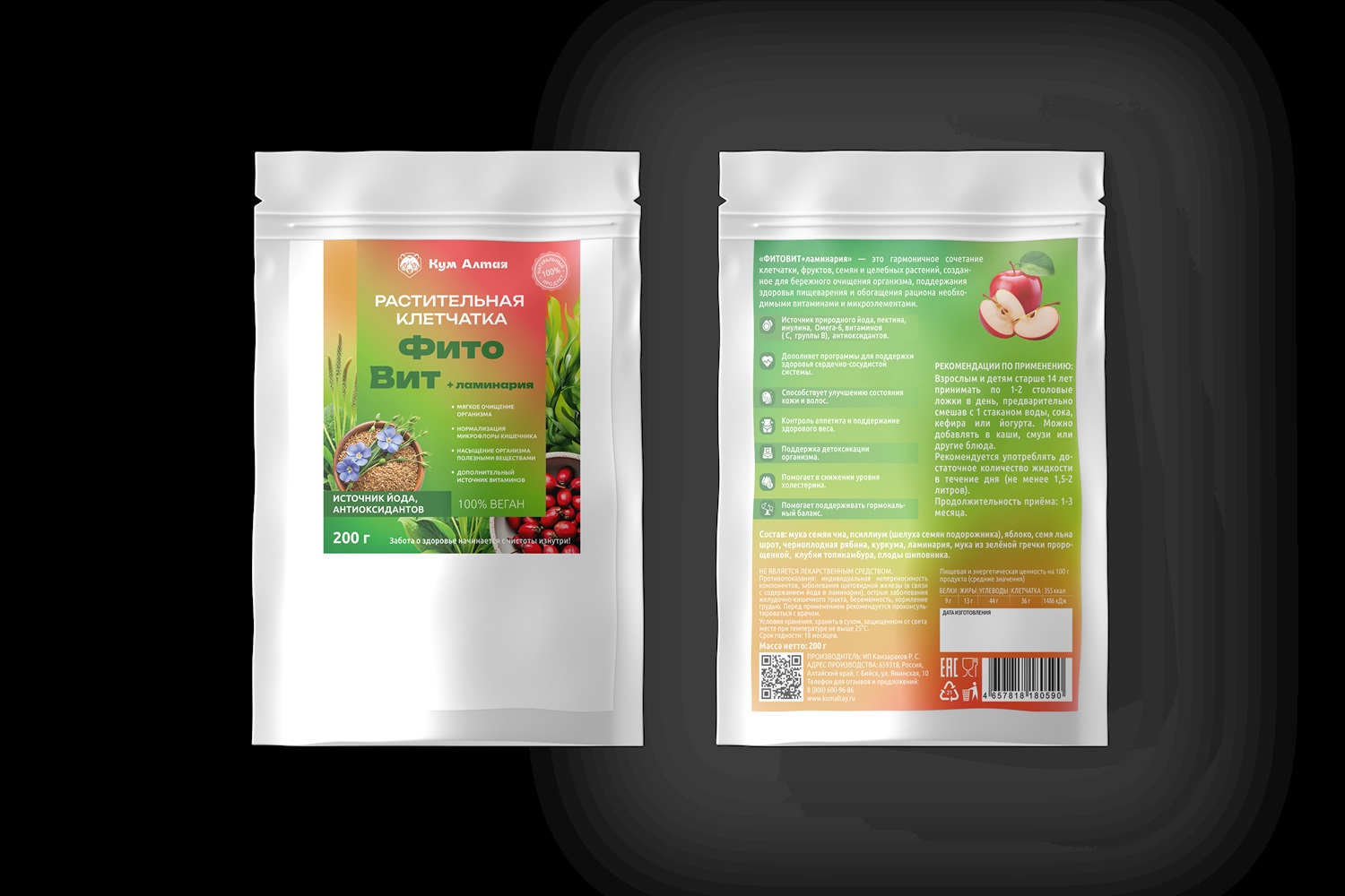 Растительная клетчатка «ФИТО&Вит + ламинария» — это гармоничное сочетание клетчатки, фруктов, семян и целебных растений, созданное для бережного очищения организма, поддержания здоровья пищеварения и обогащения рациона необходимыми витаминами и микроэлементами. Полезные свойства: Источник природного йода, пектина, инулина, Омега-6, витаминов (С, группы В), антиоксидантов; Дополняет программы для поддержки здоровья сердечно-сосудистой системы; Способствует улучшению состояния кожи и волос; Контроль аппетита и поддержание здорового веса; Поддержка детоксикации организма; Помогает в снижении уровня холестерина; Помогает поддерживать гормональный баланс. Активные растительные компоненты: Композиция растительного комплекса «Фито&Вит+ламинария» включает ценные природные ингредиенты, направленные на всестороннюю поддержку здоровья организма. Мука семян чиа— источник жирных кислот Омега-6, белка и клетчатки, способствующих длительному ощущению насыщения и поддержке сердечной деятельности. Псиллиум (шелуха семян подорожника)— богата растворимой клетчаткой, способствует деликатному очищению кишечника и нормализации стула. Яблоко— поставщик натурального пектина, полезного для вывода токсинов и укрепления стенок сосудов. Семя льна (шрот)— богатый источник альфа-линоленовой кислоты (Омега-3), необходимой для регуляции липидного обмена и сердечного ритма. Черноплодная рябина— растение-антиоксидант, содержащее витамины и биофлавоноиды, необходимые для борьбы со стрессом и повреждениями клеток. Куркума— сильный антиоксидант, стимулирующий защитные механизмы организма и поддерживающий здоровье печени. Ламинария— ценный источник органического йода, необходимого для правильной работы эндокринной системы и синтеза гормонов щитовидки. Мука из зелёной гречки пророщённой— кладезь витамина B-группы, аминокислот и микроэлементов, полезна для повышения жизненного тонуса и иммунитета. Клубни топинамбура— обеспечивают организм инулином, необходимым для роста кишечной микрофлоры и регулирования углеводного обмена. Плоды шиповника— насыщены витамином С, каротиноидами и флавоноидами, полезными для здоровья кожи, волос и укрепления защитных сил организма. Комбинация этих ингредиентов создаёт полноценный комплекс, предназначенный для бережного ухода за организмом, эффективного восстановления функций органов и восполнения дефицита необходимых нутриентов. Способ применения: Взрослым и детям старше 14 лет принимать по 1-2 столовые ложки в день, предварительно смешав с 1 стаканом воды, сока, кефира или йогурта. Можно добавить в каши, смузи или другие блюда. Рекомендуется употреблять достаточное количество жидкости в течении дня (не менее 1,5-2 литров). Продолжительность приема: 1-3 месяца. Состав: мука семян чиа, псиллиум (шелуха семян подорожника), яблоко, семя льна шрот, черноплодная рябина, куркума, ламинария, мука из зеленой гречки пророщенной, клубни топинамбура, плоды шиповника.