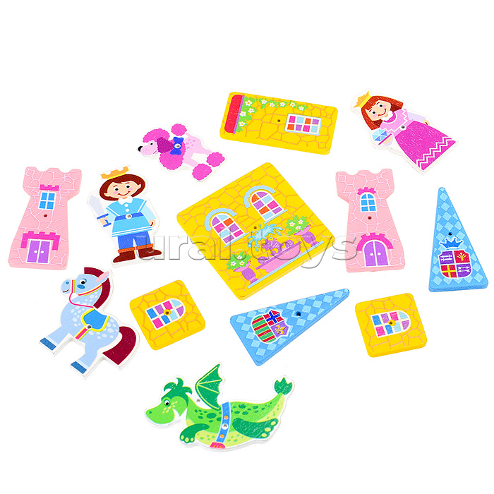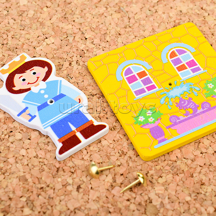 Развивающая игра «Замок. Чудо-молоток» - настольная игра для создания картин из дерева. Набор развивает творческие, сенсомоторные и конструктивные навыки ребенка. Оригинальные фигурки из дерева помогают в создании увлекательных игровых сюжетов. Ребенок учится логически мыслить, придумывать образы, но при этом попутно действует руками. Количество игроков: удобнее играть поодиночке. Задача игры - собирать картинки из деревянных деталей и прибивать молоточком к пробковой основе. Время игры: 10-15 минут. В наборе: - 1 приятная на ощупь пробковая основа (20х23 см) - гвоздики легко крепятся и удаляются. - 23 деревянные детали: принц, принцесса, лошадь, дракон, собака и элементы самого замка. В каждой детали сделана дырочка, чтобы вставлять гвоздик и прибивать ее к основе. - 1 деревянный молоточек. Он безопасен для ребенка и не содержит металлических частей, но при этом легко вбивает гвозди в основу. Играя с таким молоточком, ребенок не причинит себе травму. - 30 металлических гвоздиков с круглыми позолоченными шляпками. Материалы: дерево, металл, пробка. Возраст игроков: от 4 лет.