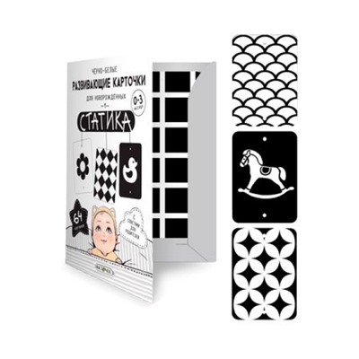 Развивающие карточки для детей. 32 карточки, двухсторонние, Ч/Б, А6. Мелов.картон. Скруг.углы. Отверстия для подвеса. В папке с клапаном. Инд.уп