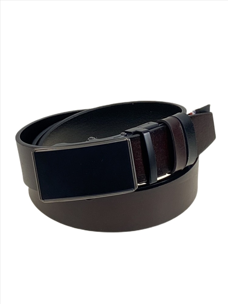 Универсальный двусторонний мужской ремень из искусственной кожи. Классический дизайн подходит для разных образов — от повседневного до более формального. Пряжка-зажим сделана таким образом, чтобы обеспечить быстрое и удобное застегивание, а также обеспечить надежное фиксирование на поясе.