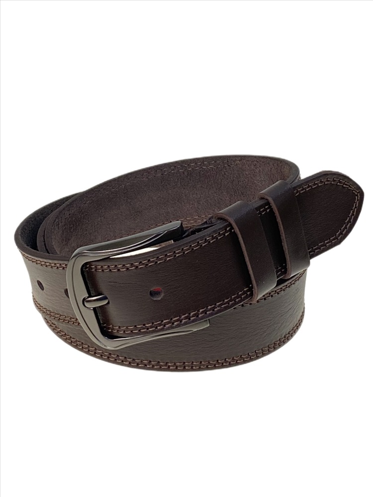 Универсальный мужской ремень из натуральной кожи. Классический дизайн подходит для разных образов — от повседневного до более формального. Удобная пряжка способствует надежной фиксации, что делает его практичным в использовании.