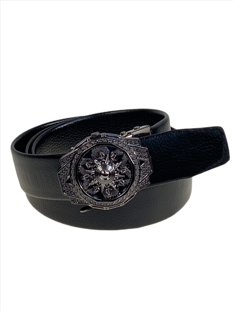 Ремень мужской с автоматической пряжкой из искусственной кожи, цвет черный