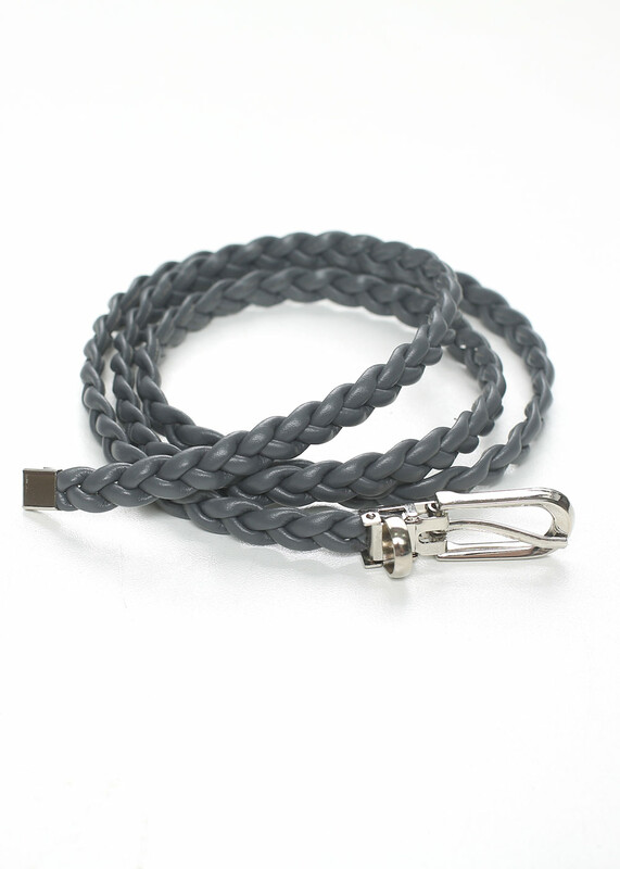 Плетёный кожаный ремень с застёжкой на металлическую пряжку и шлёвку.