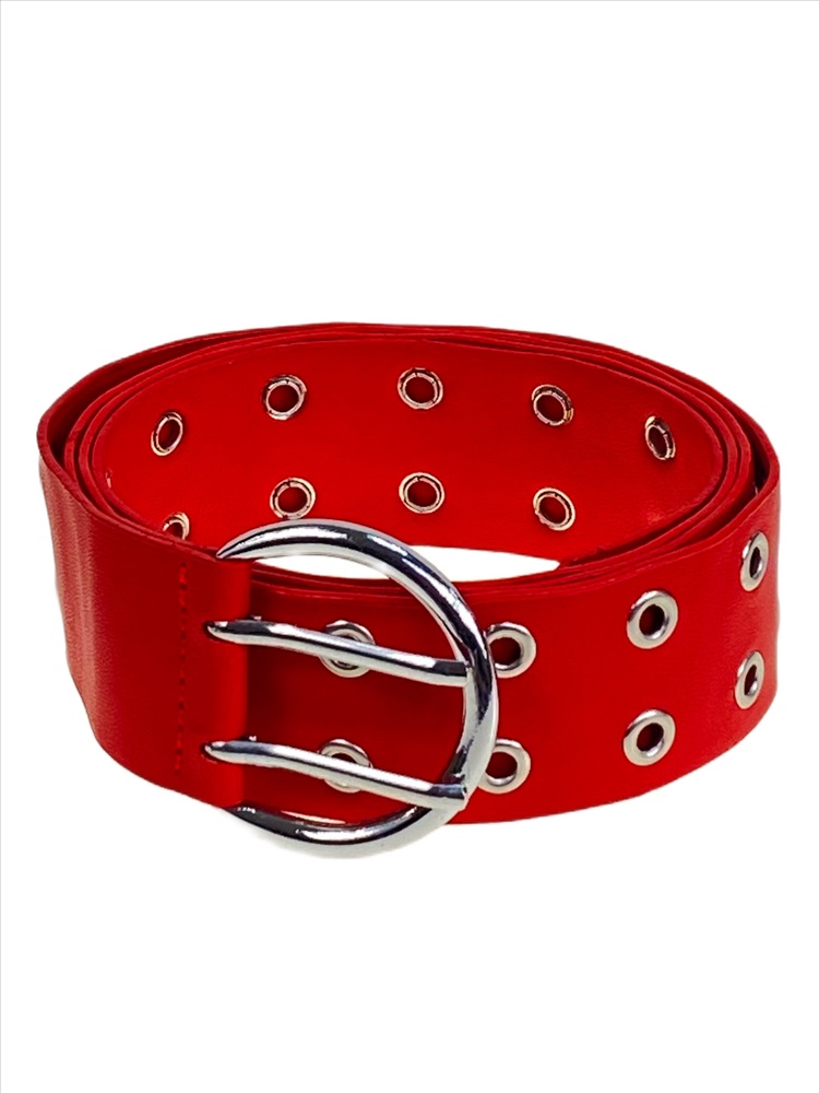 Ремень женский с люверсами из искусственной кожи, цвет красный