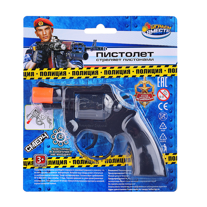 Код: 493120 Штрихкод: 4630395020893 Страна производитель: Китай Размеры упаковки: 19 x 16 x 3 см Количество в коробке: 96 Размер 18,4 х 2,7 х 15,8 см. Стреляет пистонами 8 зарядов. Пистоны в комплект не входят! Изготовлено из полимерных материалов. Соответствует требованиям безопасности продукции. Для детей от 3-х лет. Комментарии к товару