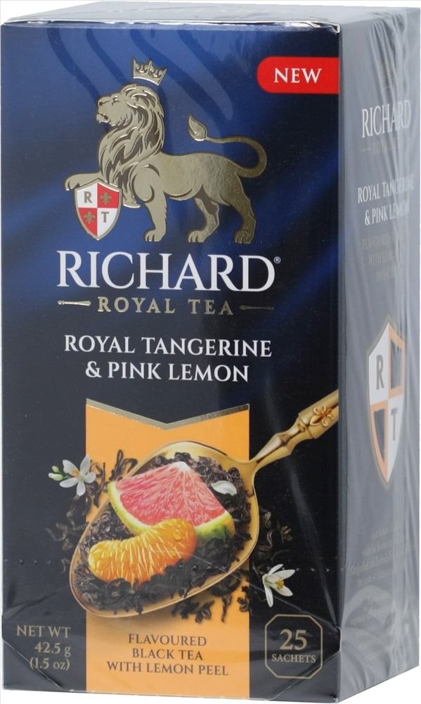 Наличие: >100 Черный чай с натуральными растительными добавками.Сочная новинка от чайных мастеров RICHARD! Необычайно вкусный черный чай со вкусом розового лимона, мандарина и лемонграсса. Комментарии к товару