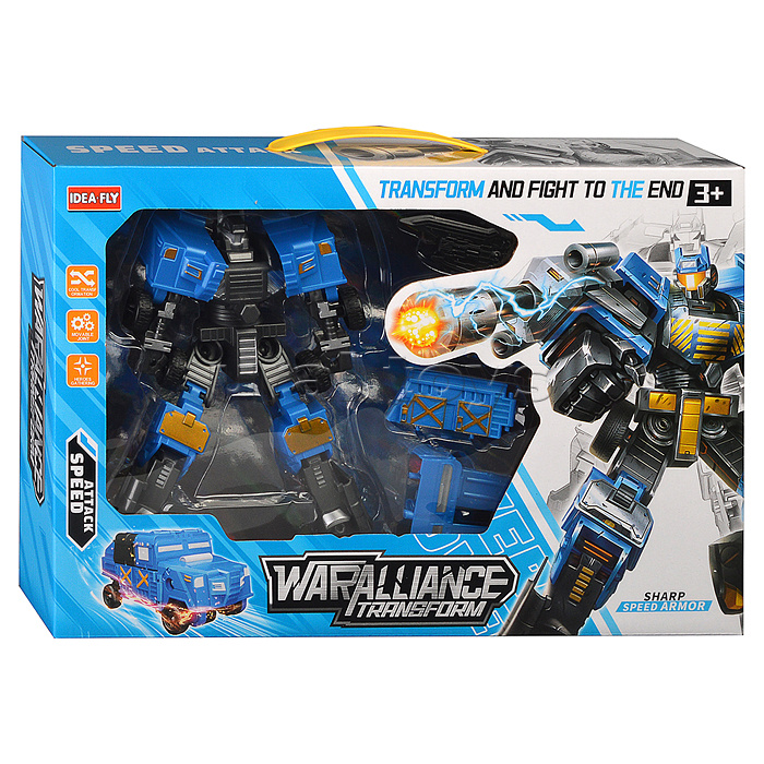 Код: 475270 Страна производитель: Китай Размеры упаковки: 6.8 x 35.5 x 23.5 см Количество в коробке: 30 • Размеры робота: 10.5х5х19 см. • Робот трансформируется в машину. • Размеры машины: 14х7.5х7 см. • Материал: пластик. • Соответствует требованиям безопасности продукции. • Возраст: от 3-х лет. Комментарии к товару