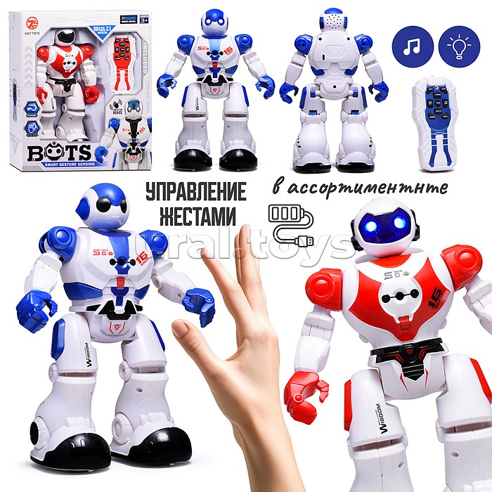 Код: 420921 Страна производитель: Китай Размеры упаковки: 28 x 10 x 32 см Количество в коробке: 24 Идет вперед и назад, а также поворачивает влево и вправо с характерными звуками робота. Танцует под пять детских песен и восемь мелодий без слов. Синяя подсветка глаз. Робот работает от встроенного аккумулятора (кабель для зарядки в комплекте). Пульт работает от 2-х батареек «АА» (не входят в комплект). Размеры: 17 х 9 х 26 см. Материалы: пластмасса, полимерные материалы. Соответствует требованиям безопасности продукции. Для детей от 6 лет. Комментарии к товару
