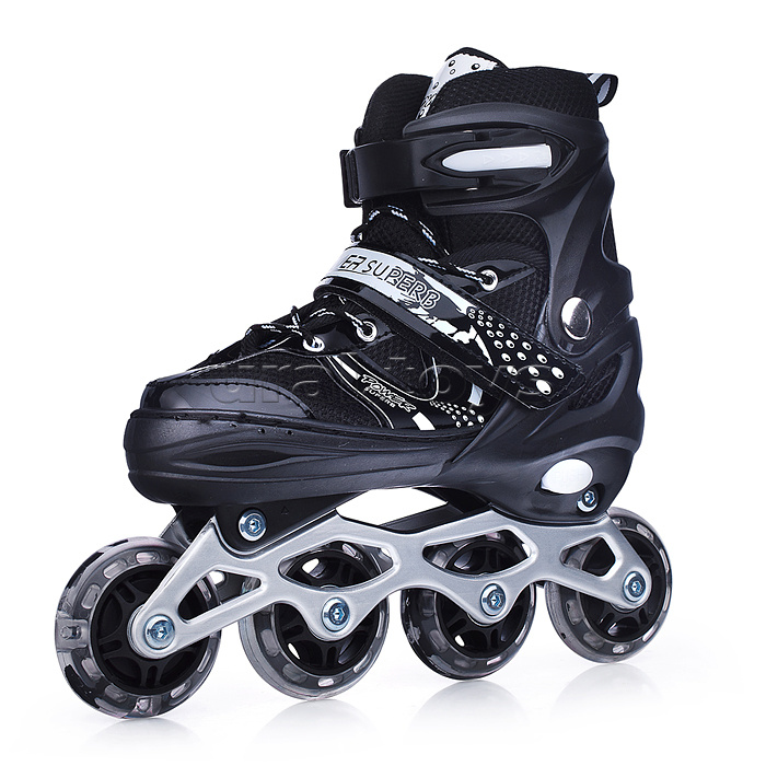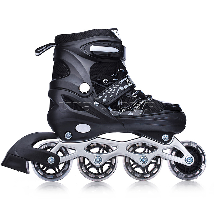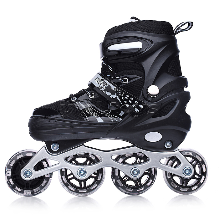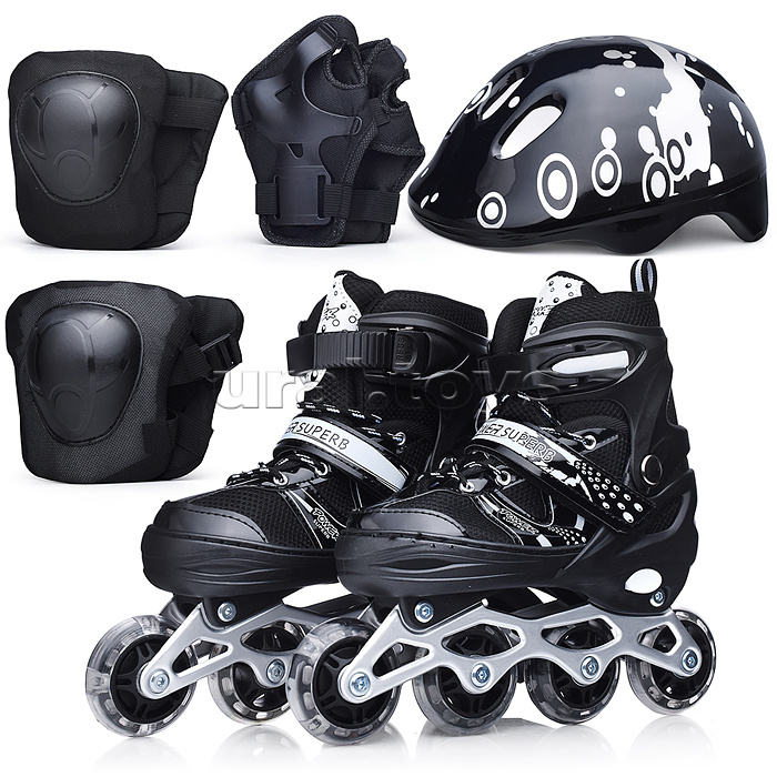 Код: 474166 Штрихкод: 6978459042381 Страна производитель: Китай Размеры упаковки: 40 x 40 x 20 см Количество в коробке: 6 • Размер роликов: S (30-33). • Длина стельки: 185 мм. • Длина рамы: 215 мм. • Материал рамы: алюминий. • Колёса из полиуретана (d=64 мм.) • Класс подшипников: ABEC-7 (608Z). • Тип фиксации: шнуровка, липучка, бакля. • Пластиковый ботинок. • Соответствует требованиям безопасности и стандартам качества продукции. • Максимальный вес: 60 кг. • Передние колёса светятся во время движения. • Есть тормоз на правом коньке. • Размер конька 260х60х225 мм. • В комплекте: - защитный шлем (26х20х11 см.) - защита ладоней (9х12 см.) - защита локтей (10х11 см.) - защита колен (12х14 см.) Комментарии к товару