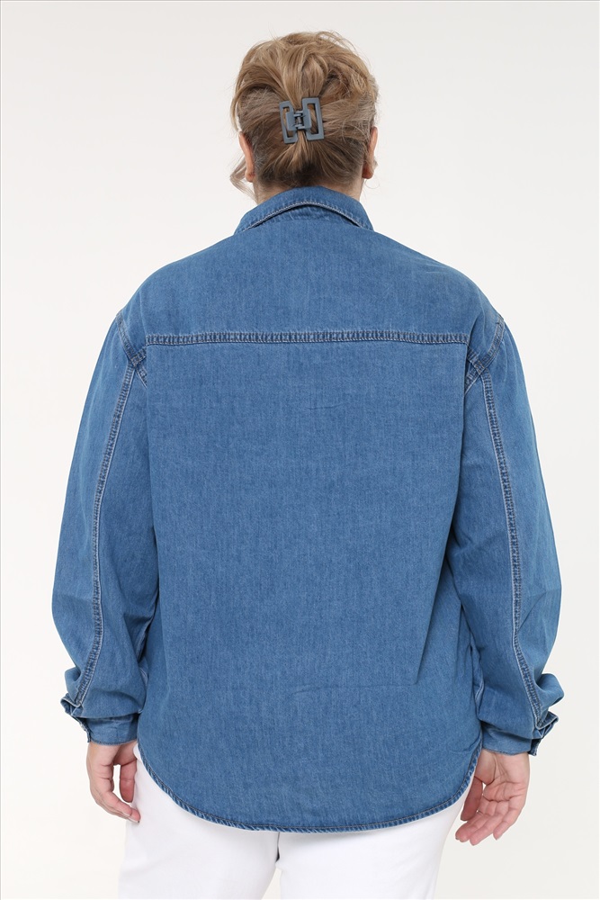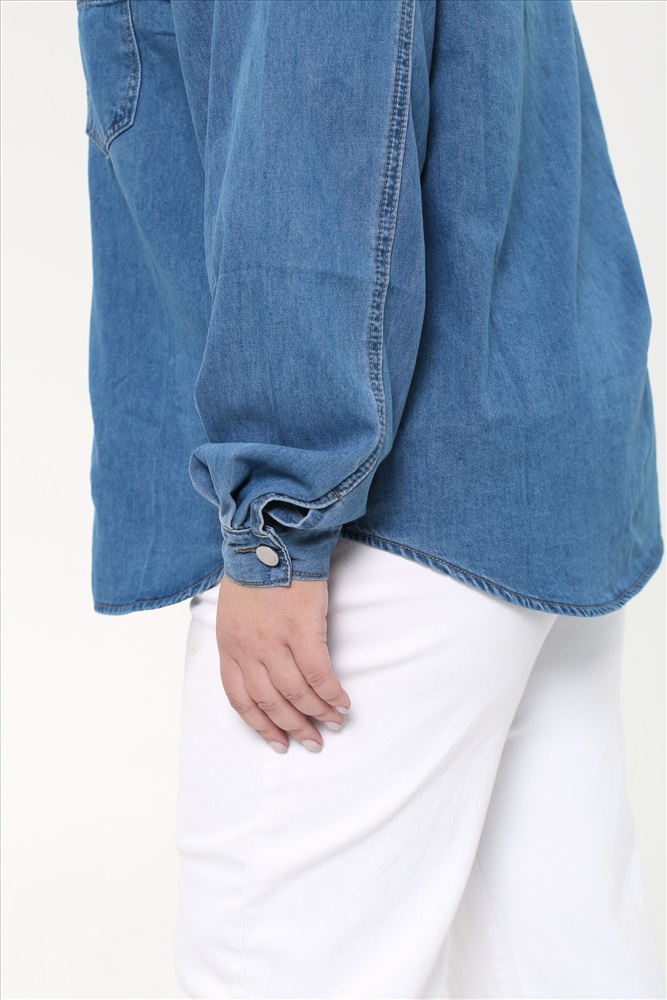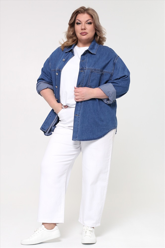 Удлиненная рубашка из мягкого денима. Материал хорошо сохраняет тепло, устойчив к деформации и практически не мнется. Модель свободного кроя имеет классический отложной воротник. Застегивается спереди под планку на пуговицы по всей длине. Рукава полной длины с приспущенной проймой по низу оформлены манжетами с пуговками. Кокетка на груди и по спинке, закругленные бока способствуют оптимальной посадке по фигуре. Объемный накладной карман на груди добавляет модели оригинальности и практичности. Свободный силуэт не сковывает движений и искусно обыгрывает фигуру, маскируя мелкие недостатки. Отлично подходит для комбинирования с узкими брюками, джогерами, джинсами и легинсами. (Во избежание окраски при первой носке, удалить с ткани новых джинсов излишки пигмента поможет легкая стирка с одним из закрепителей цвета (пищевой соды, уксуса, лимонной кислоты)
