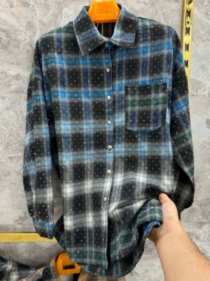 Стильная рубашка-блузка с стразами из люксовой ткани трикотаж фатин