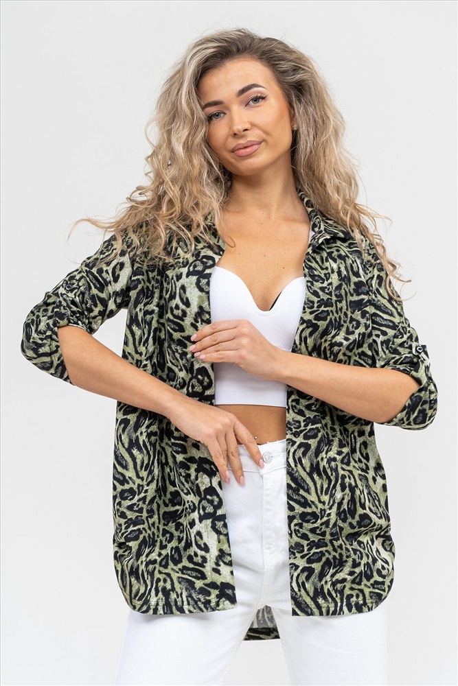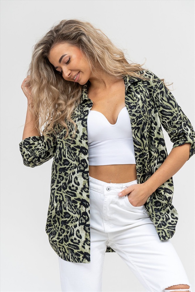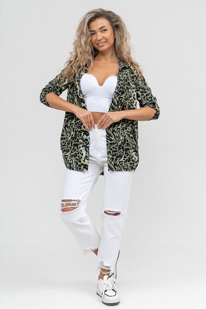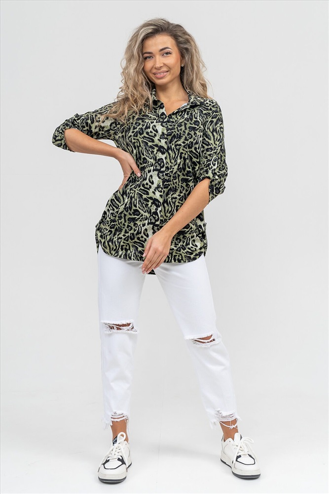 Производитель: НАТАЛИ ID товара: 1075560 Состав: 100% Хлопок Сезон: Демисезон Длина: Средняя Фасон: Свободный Рукав: 3/4 Вид застежки: Пуговицы Вырез горловины: Отложной воротничок Рисунок: леопардовый Декоративные элементы: Принт Основная ткань: Хлопок Стиль: повседневный Вид ткани: Кулирка Страна бренда: Россия Страна производства: Россия