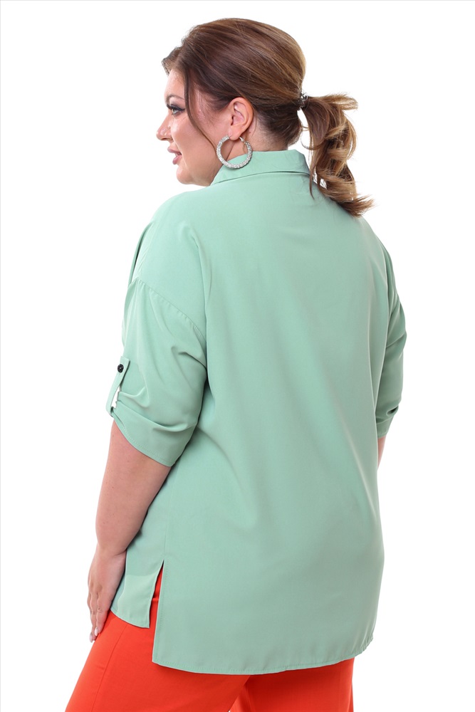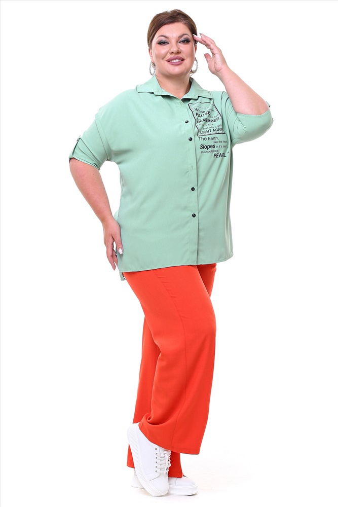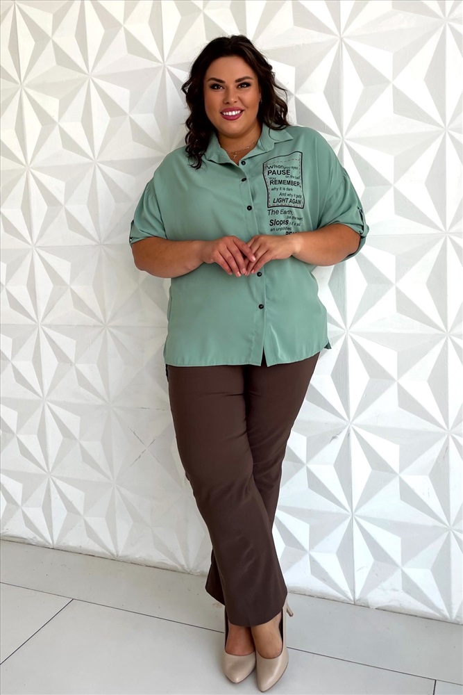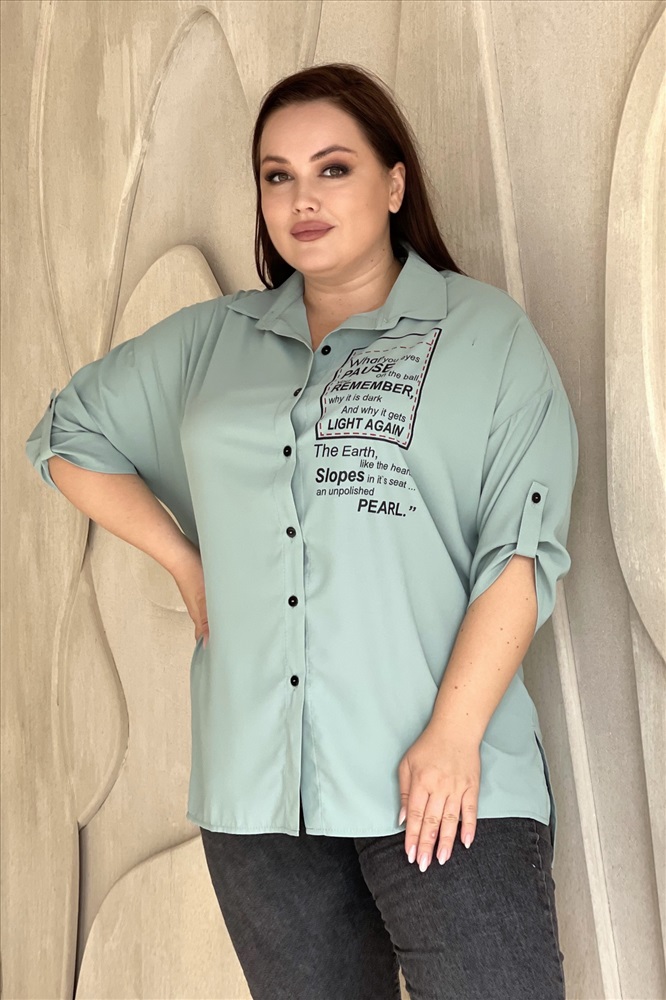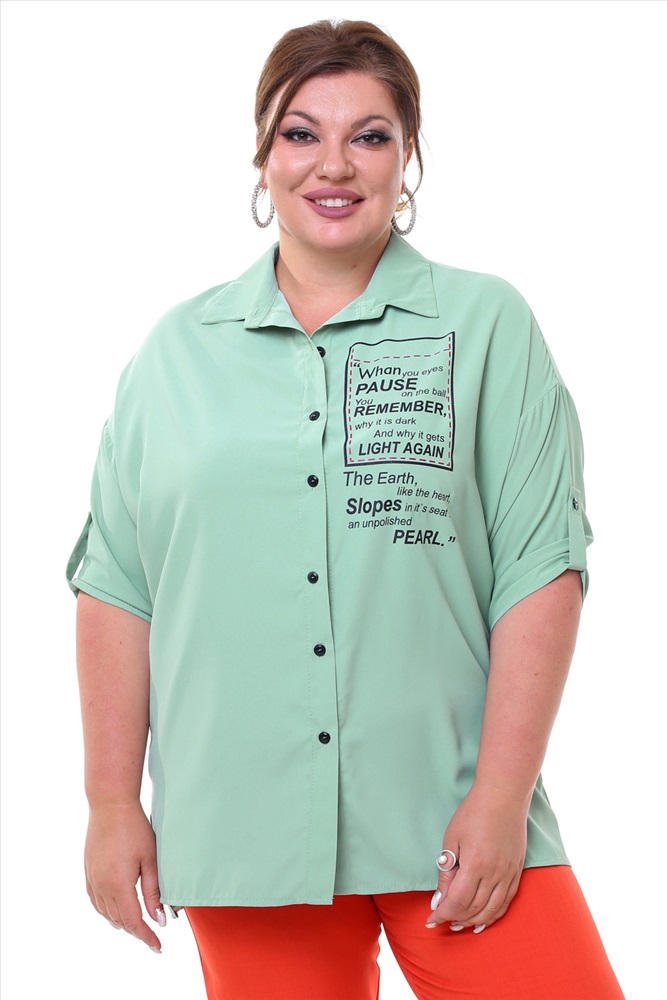 Удлиненная рубашка прямого кроя идеальный вариант для женщин, ценящих простоту и элегантность. Модель привлекает внимание оригинальным дизайном. Застегивается спереди на пуговицы под скрытую планку. Имеет классический отложной воротник и приспущенные рукава длиной ¾, которые при желании можно присобрать патами. Объемный накладной карман на груди украшен модными надписями, что освежает образ и добавляет динамичности. Удлиненная спинка и кокетка по спинке способствуют оптимальной посадке по фигуре. Мягкий, приятный телу материал подарит комфорт на весь день. Рубашку можно комбинировать как с узкими брюками, так и с легинсами.