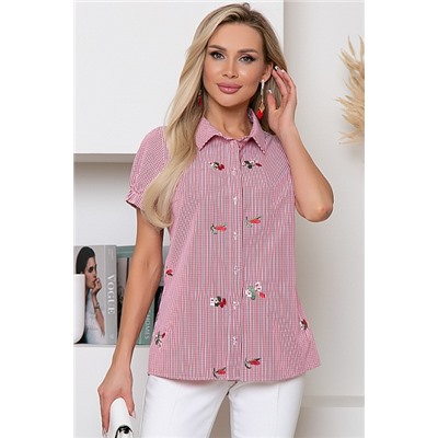 Рубашка из текстильного полотна с хлопком в мелкую клеточку с вышивкой.