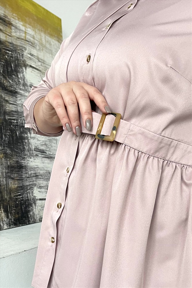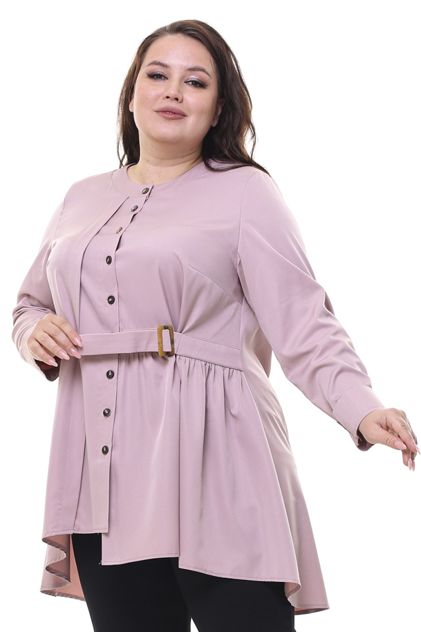 Рубашка расклешенная с ярусом сбоку пудра