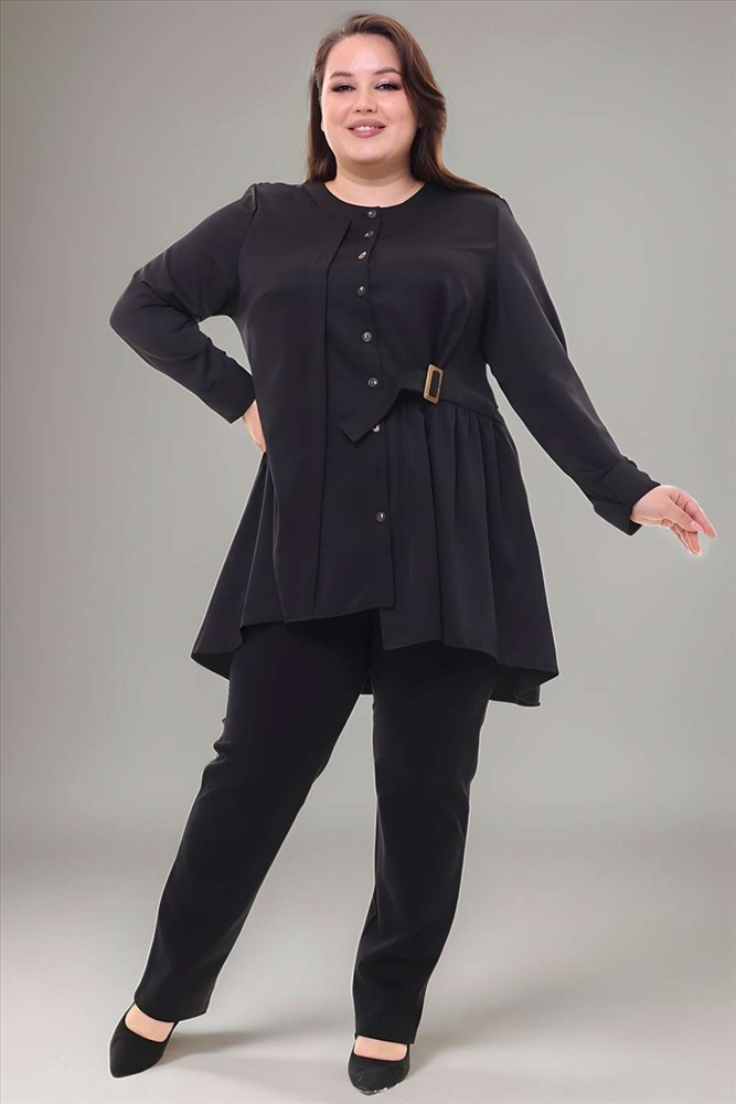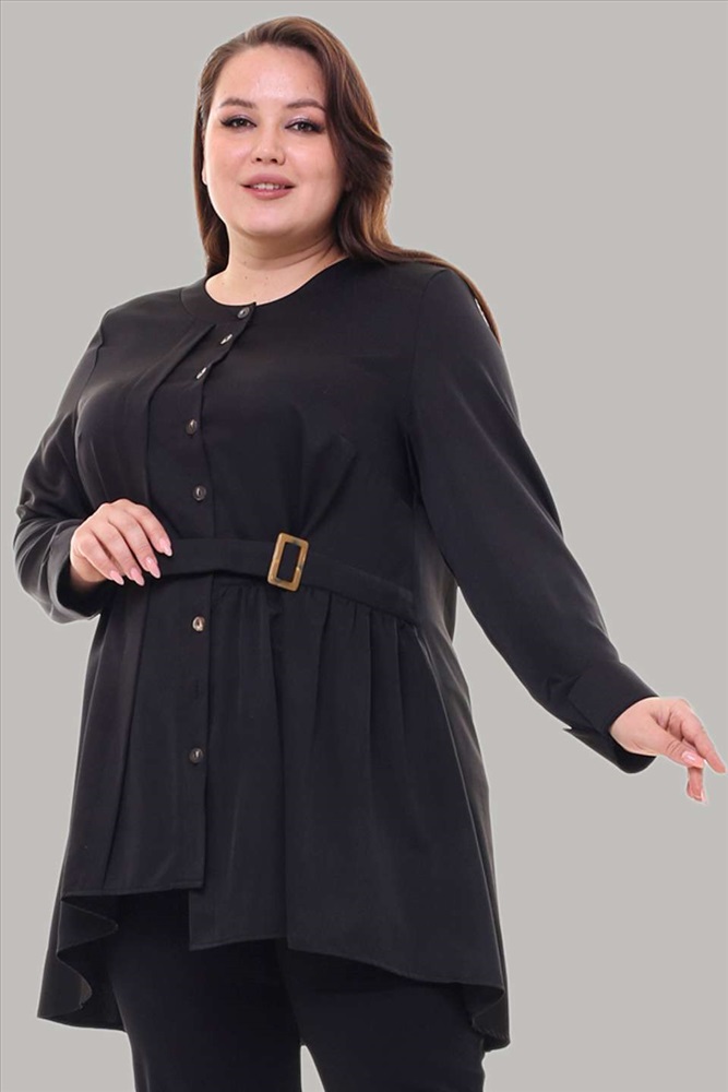 Стильная удлиненная рубашка свободного кроя - идеальный вариант для женщин, ценящих простоту и элегантность. Модель привлекает оригинальным дизайном. Рубашка застегивается спереди на оригинальные пуговицы под планку. Имеет круглый вырез, оформленный широким кантом и рукава полной длины с небольшими разрезами. Асимметричный низ визуально стройнит фигуру и зрительно вытягивает силуэт. Оригинальный ярус сбоку декорирован пряжкой и кокетливыми рюшами, что добавляет женственности и романтизма. Декоративные планки по спинке украшены хлястиком. Удлиненная спинка способствует оптимальной посадке по фигуре. Свободный крой искусно обыгрывает силуэт, а мягкий, приятный телу материал подарит комфорт на весь день. Отлично подходит для комбинирования с брюками и легинсами.