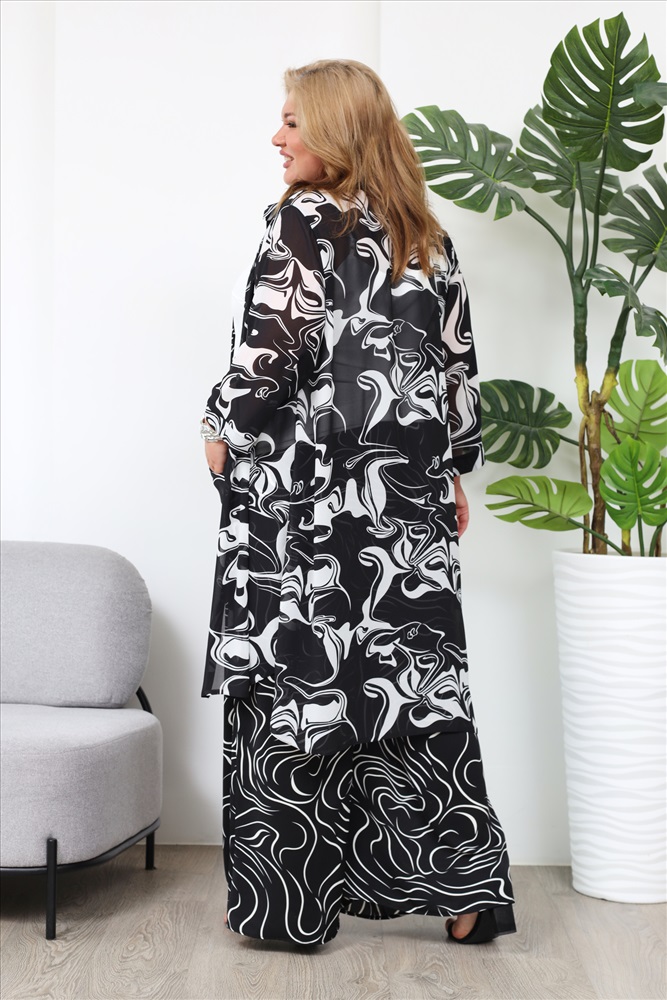 Рубашка шифоновая удлиненная "волны" черная