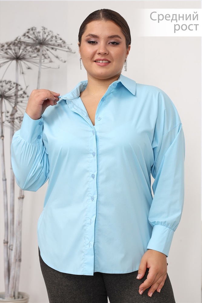 Рубашка с воротником-стойкой и складчатыми элементами на средний рост голубая