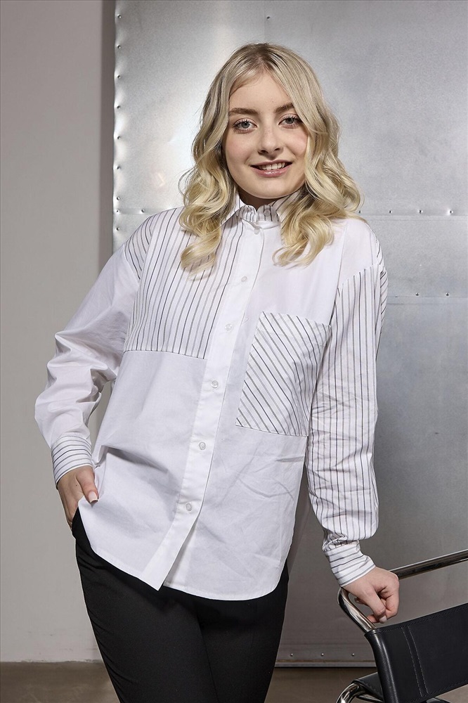ID товара: 1126853 Состав: Хлопок 60%, Полиэстер 40% Сезон: Демисезон Длина: Средняя Фасон: Прямой Рукав: Длинные Вид застежки: Пуговицы Вырез горловины: Отложной воротничок Рисунок: Полоски Основная ткань: Хлопок Стиль: классический Страна бренда: Россия Страна производства: Россия Рубашка выполнена в сочетании принтованной ткани и однотонной. Слева нагрудный карман. Длинные рукава с манжетом. Классический воротник, застежка на пуговицы. На спинке кокетка и встречная складка Характеристики: