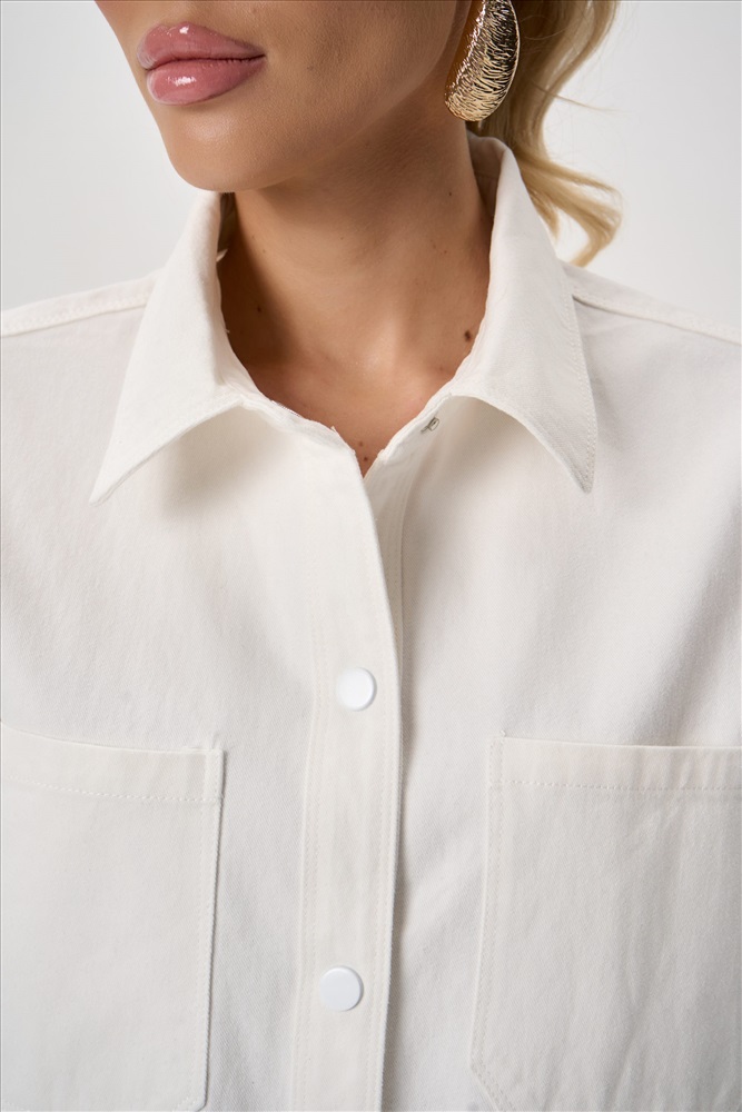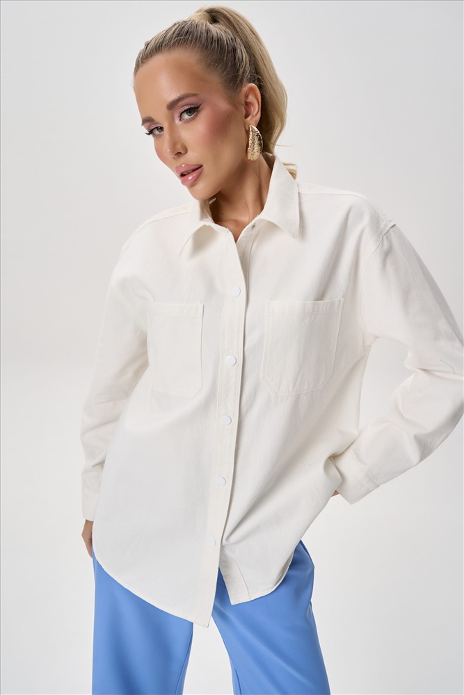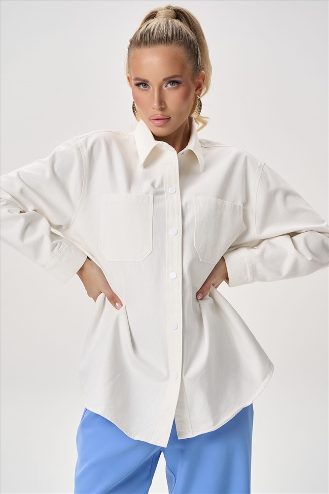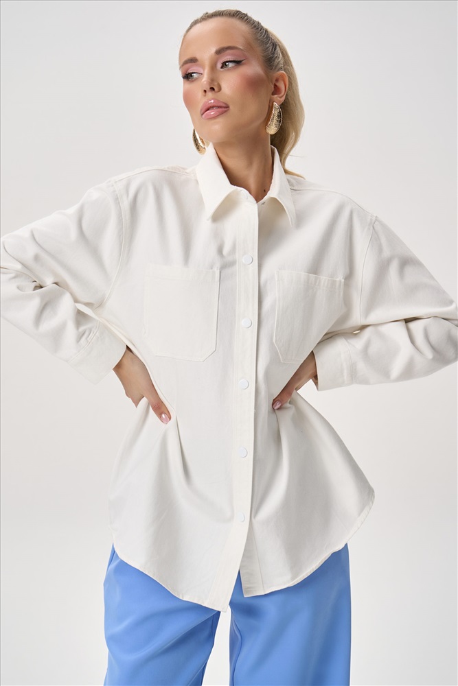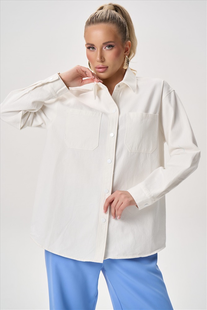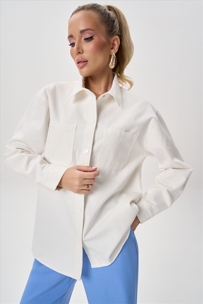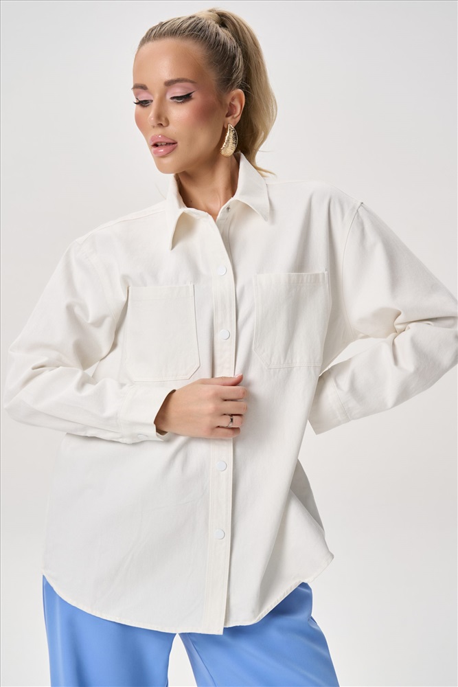 Состав: Хлопок – 100% Описание Лаконичная рубашка, которая легко вписывается в современный гардероб. Модель сочетает комфорт натуральной ткани и актуальный свободный силуэт, создавая расслабленный, но аккуратный образ. Благодаря плотному хлопку рубашка держит форму, оставаясь при этом мягкой и приятной к телу. Детали изделия: прямой свободный силуэт классический рубашечный воротник застёжка на кнопки по всей длине два накладных нагрудных кармана с клапанами длинный рукав с манжетой слегка удлинённая линия низа с мягким закруглением плотная, дышащая ткань Материал: 100% хлопок — натуральная ткань с хорошей воздухопроницаемостью, комфортная для повседневной носки и сохраняющая форму изделия. Отлично сочетается с нашими брюками “Клио”, топом “Ева” или футболкой “Базовая” Замеры ПОГ 53 см ПОТ 55 см Длина рукава 51 см Длина рубашки 74 см