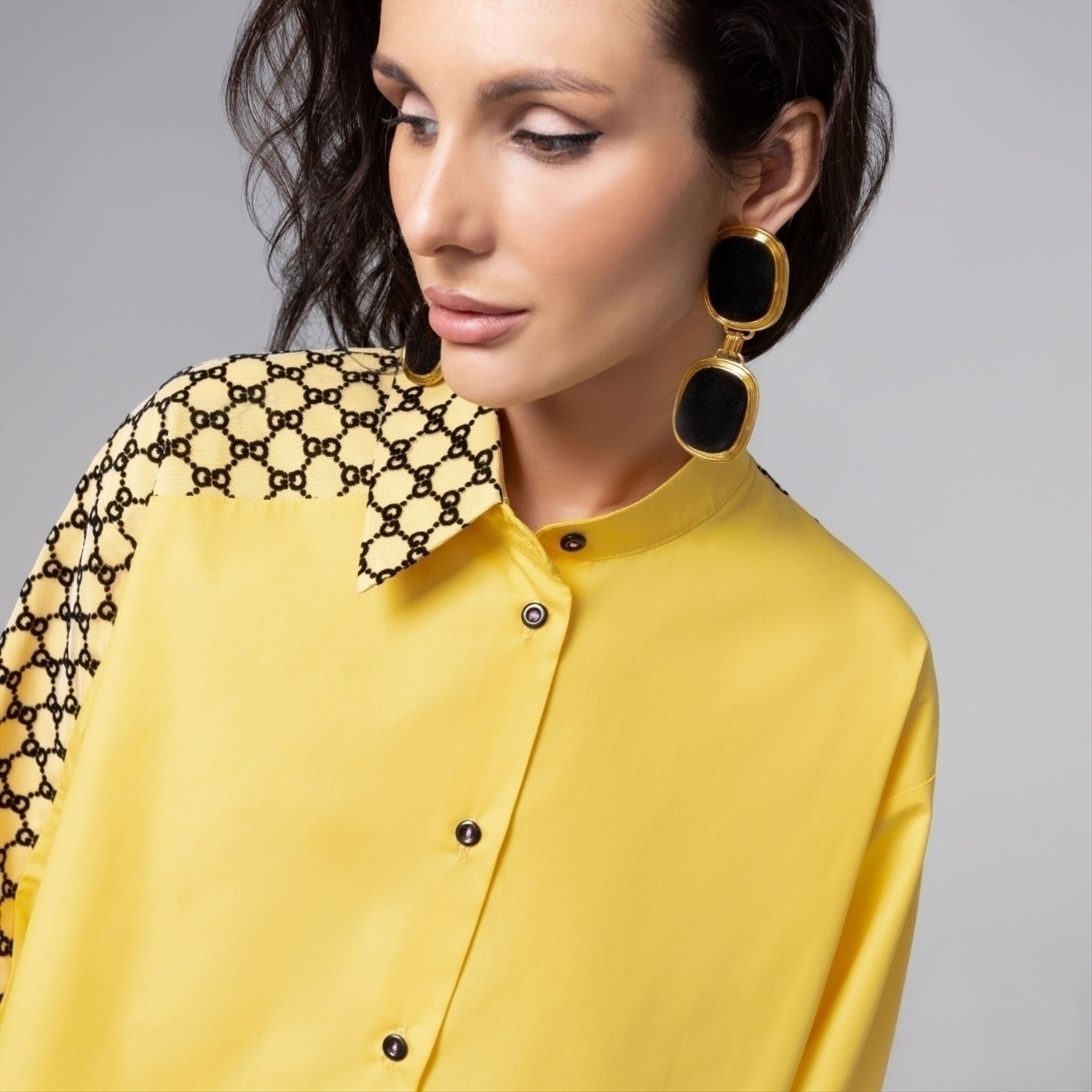 Состав: «Тиси-поплин», «сетка флот» (50% хлопок, 50% полиэстер) Плотность ткани: Средняя Тип ткани: Текстиль Вид застежки: Пуговица/-ы Декоративные элементы: Другое Дополнительный цвет ткани: Черный Карманы: Нет Основной цвет ткани: Жёлтый Отрезная талия: Нет Подклад: Нет Резинка по талии: Нет Рисунок/раппорт: Нет, все изделия идентичны Сезон: Круглогодичный Силуэт: Свободный Стиль: Нарядный Параметры модели на фото: