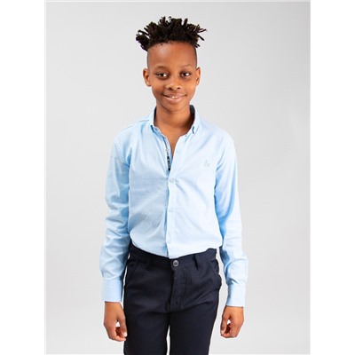 Классическая рубашка для мальчика Соль&Перец прямого силуэта, на кнопках. Рубашка выполнена из 100% хлопка для лёгкости и комфорта в повседневной носке. Рубашка идеально сочетается с брюками любого фасона и подойдет как для школы, так и для торжественного мероприятия. На груди вышивка логотип бренда.